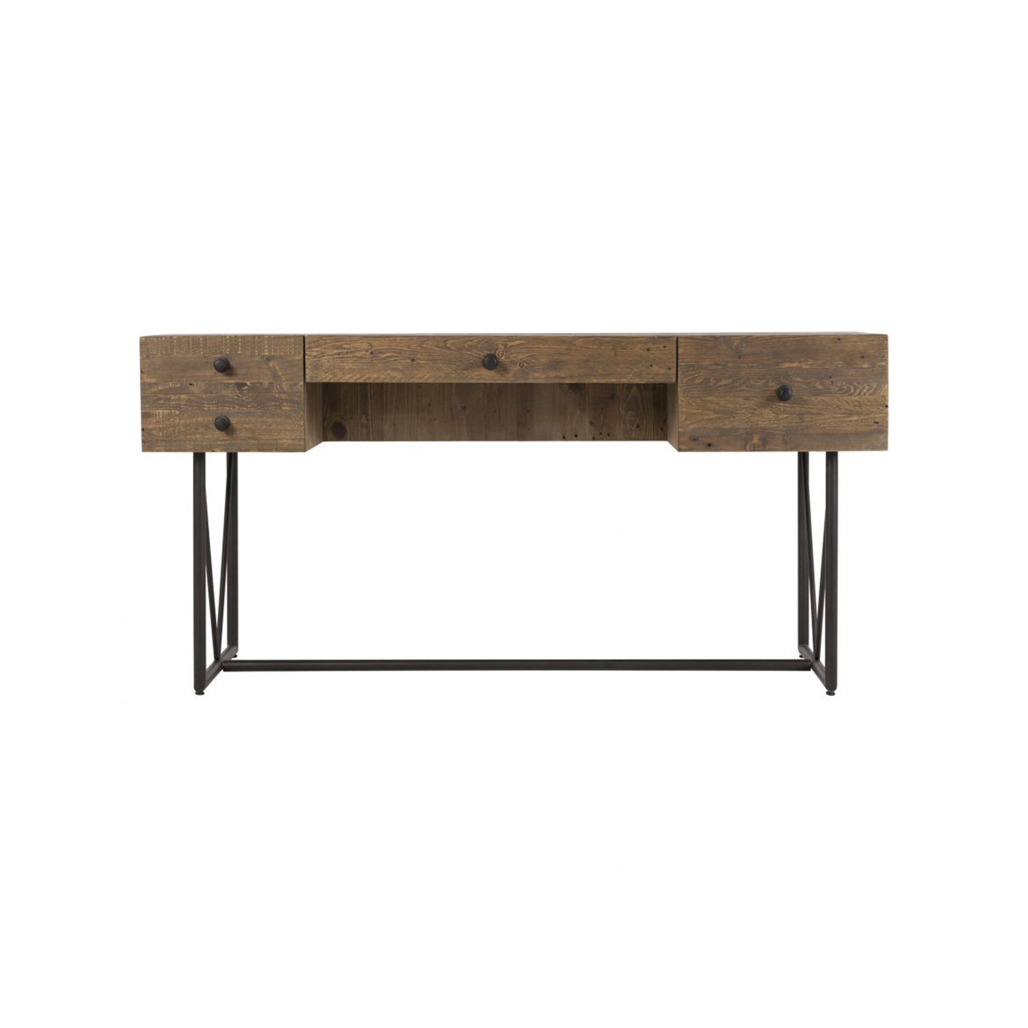 An ideal home office desk for someone with a heavy workload but needs to stay organized. The Vahe Desk combines a rustic and contemporary design that will blend subtly with your home office decor. With four drawers and two large shelves, its positioning is reversible, depending on how you would like it to function. Made with solid reclaimed pine and steel, this desk brings an earthy industrial feel to your office.