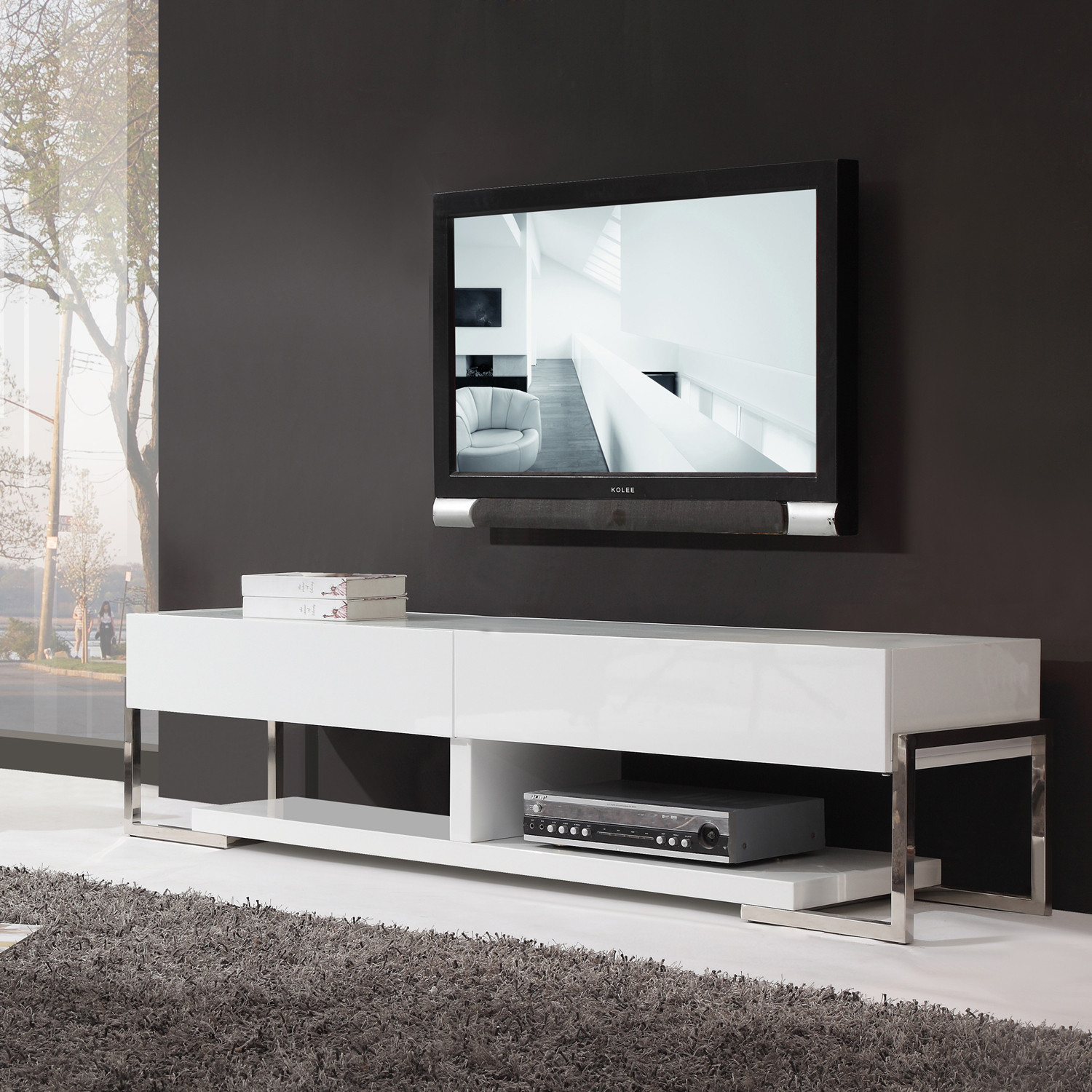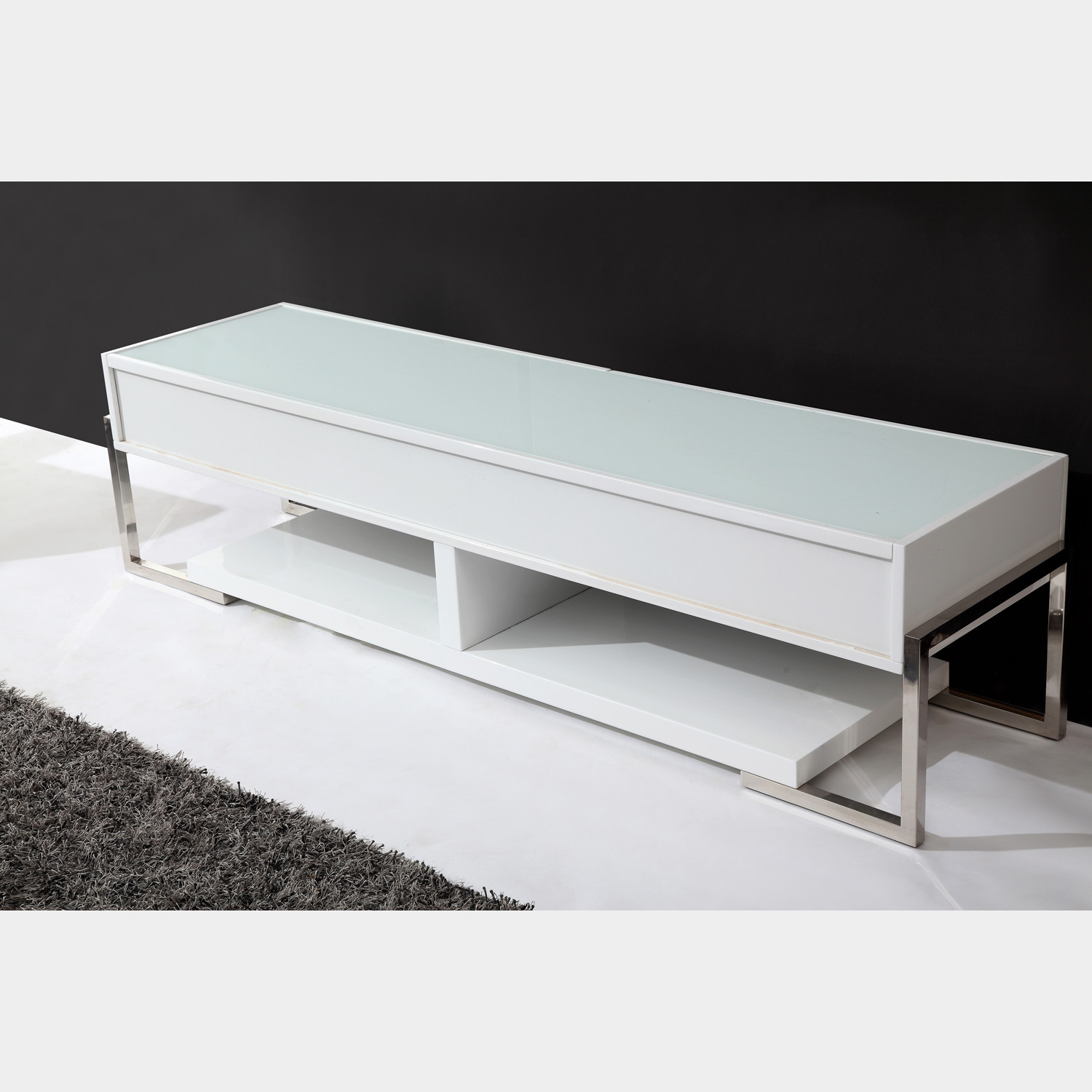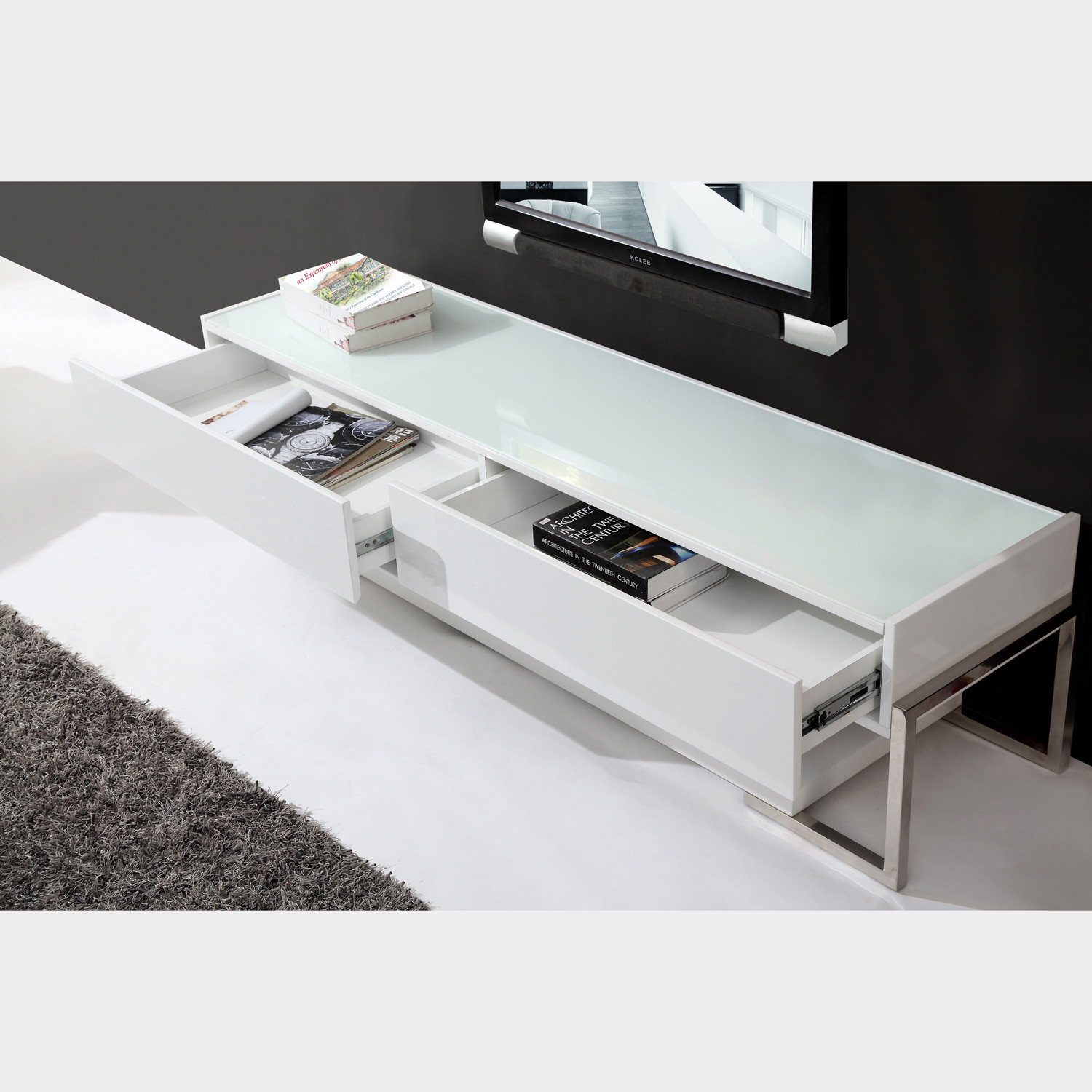The Agent fits into your modern lifestyle with supreme elegance. This piece features clean lines, a white tempered glass top, stainless steel accents, soft-closing drawers, and a high gloss finish.