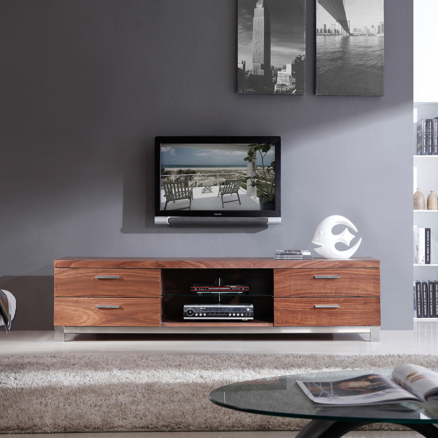 — Wood and Stainless Steel TV Stand