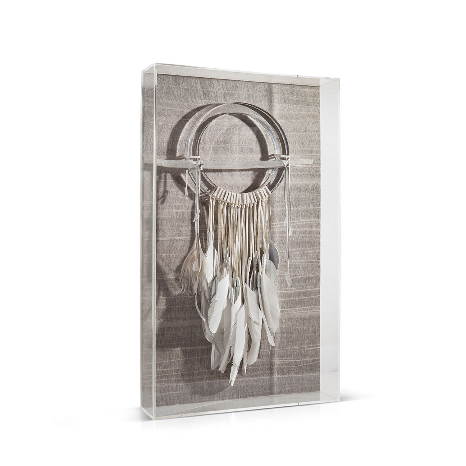 In this smaller series of wall mounted Dreamcatchers, artist and Parsons graduate Gabriela Noelle instills spirit into everyday objects for the home. Gabriela references history, culture, and nature, repurposing forsaken treasures to create a totem of the potential within. Her series of dreamcatchers serve as a reminder to wake up your personal capacity and fulfill your most powerful dreams.
