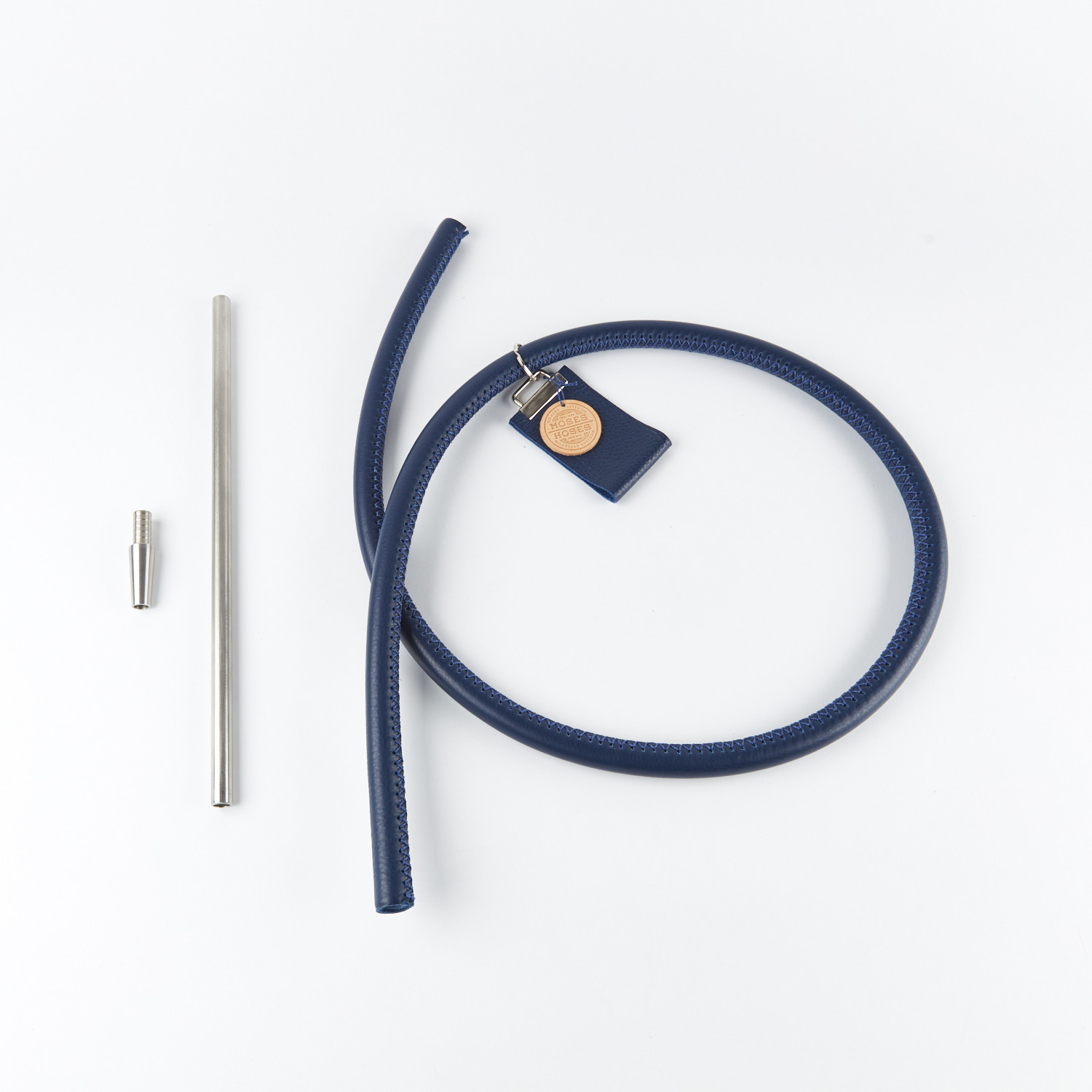 It comes complete with a set of stainless steel pieces that are both simple and elegant, as well as a matching leather keychain handle holder to hold your hose handle off the table when you are not smoking, and add some extra style to your setup.