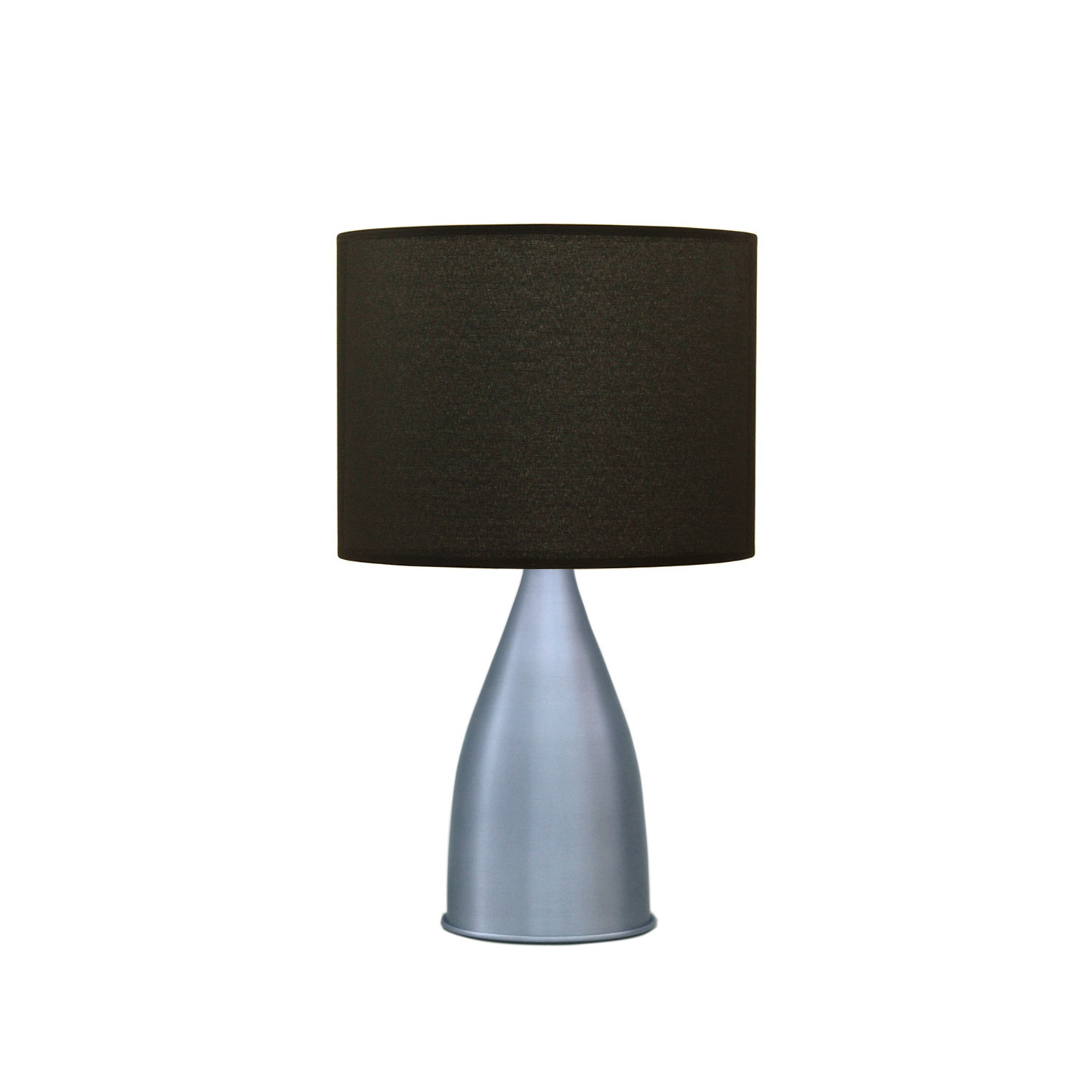 The Tina lamp was inspired by a classic ceramic form. A wash of ice blue color with a subtle black silk shade lends a calm presence to your room. This illuminator was hand-crafted and hand finished in the USA and comes with a rocker switch on the cord and a CFL bulb.