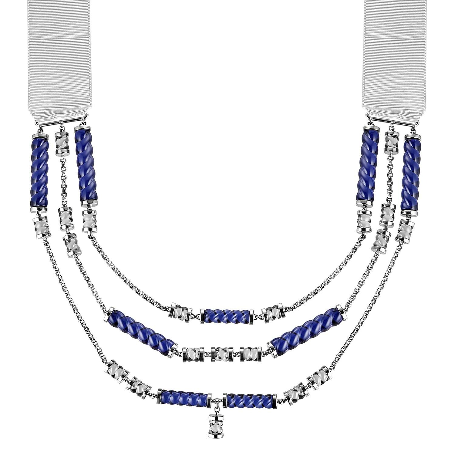 Baccarat Crystal + Sterling Silver Torsade Necklace // 16"-18" // Midnight Blue + Mist Gray + Silver