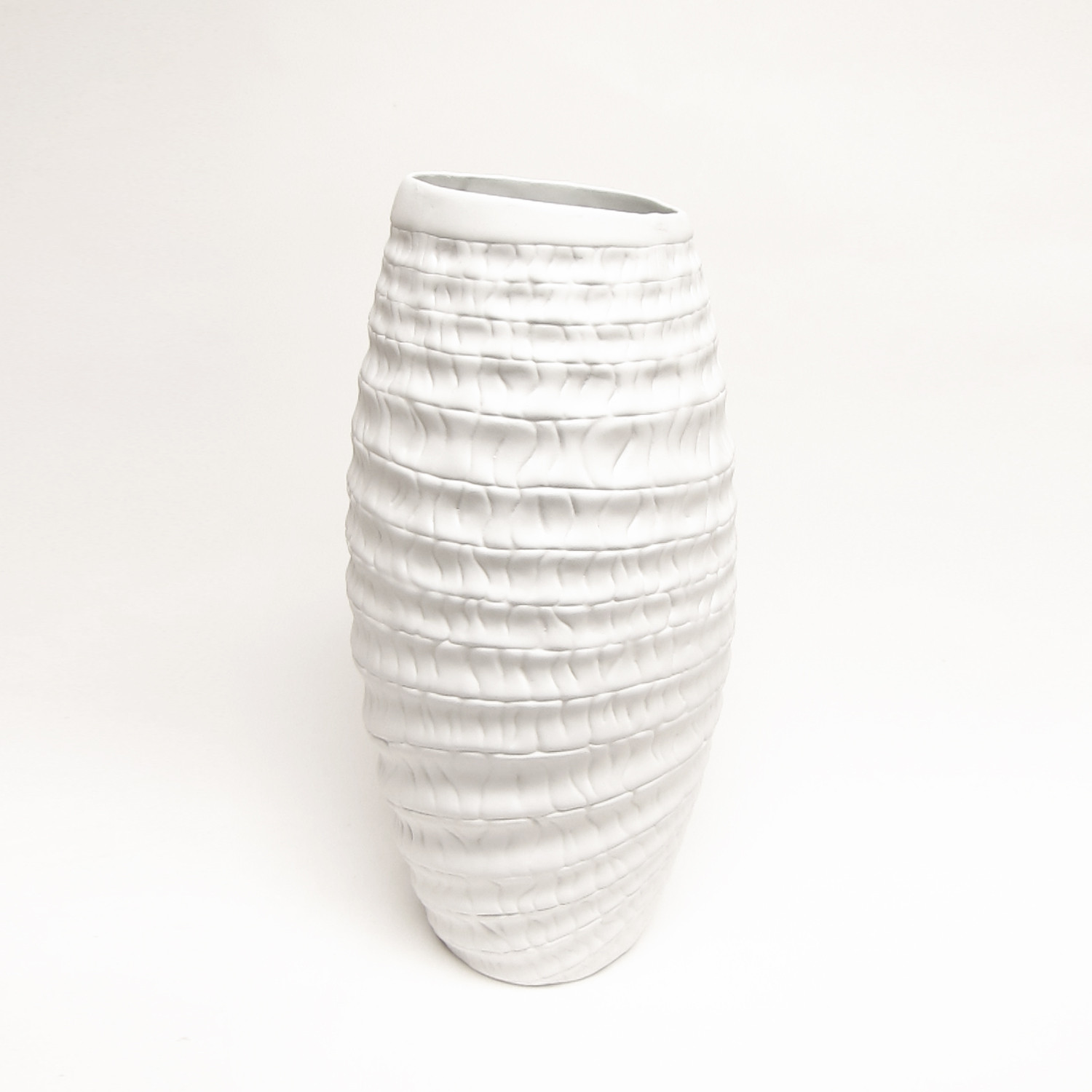 Bahari creates unexpected, seductive designs in traditional kiln-fired porcelain. This contemporary porcelain piece features a knit-like texture that enhances your choice of flowers for any occasion.