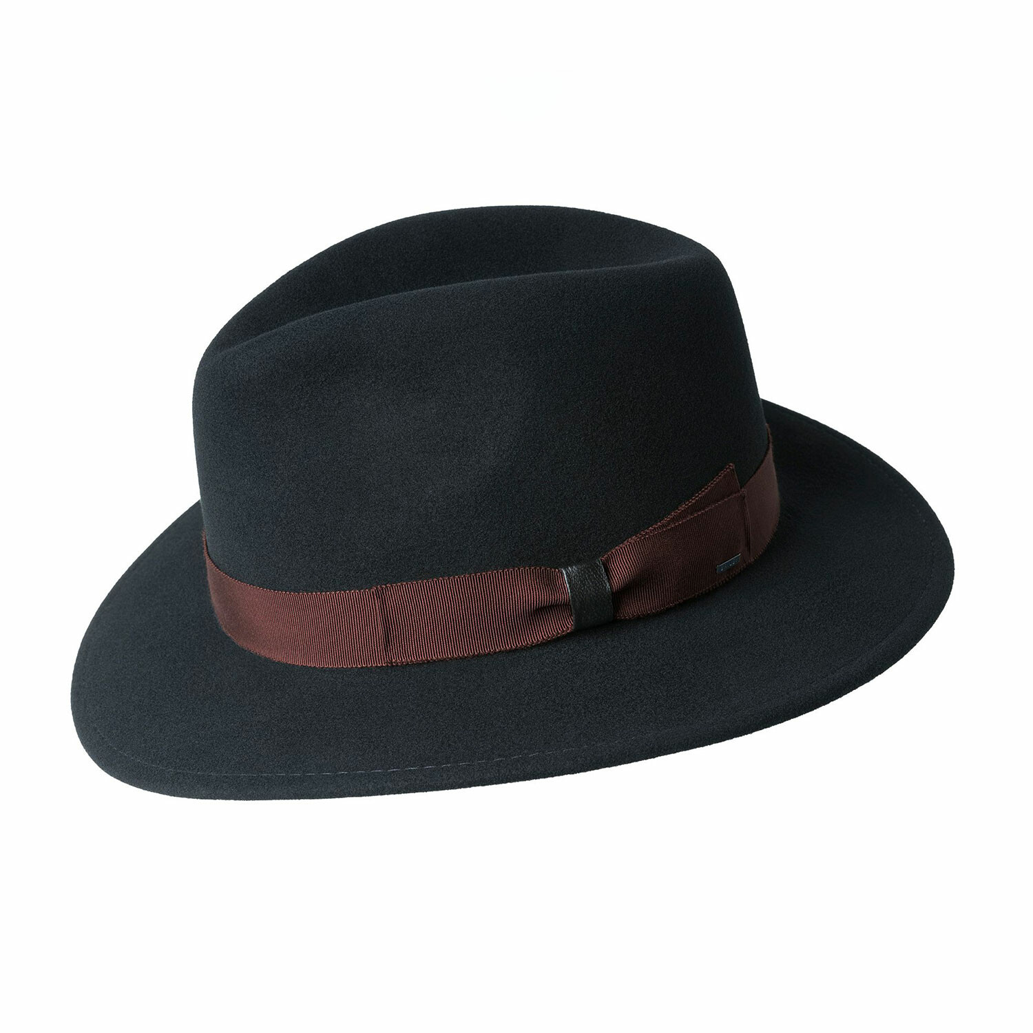 Flattering to all faces, the Steers is made from Bailey's signature shape retentive, water repellent LiteFelt® wool. The effortless yet stylish look has a low profile pinch front crown and casual 4.5" turn down brim. It's then finished with a Japanese grosgrain trim with leather detail. On the inside, there's a fine woven adjustable sweatband and loop for easy hanging.
