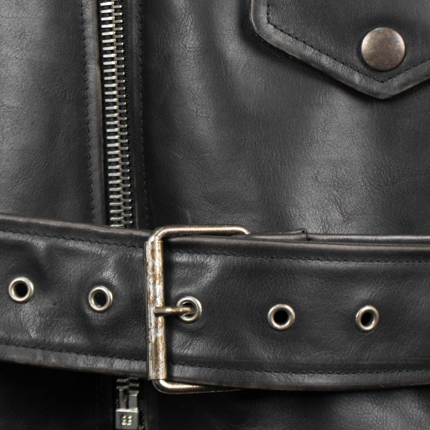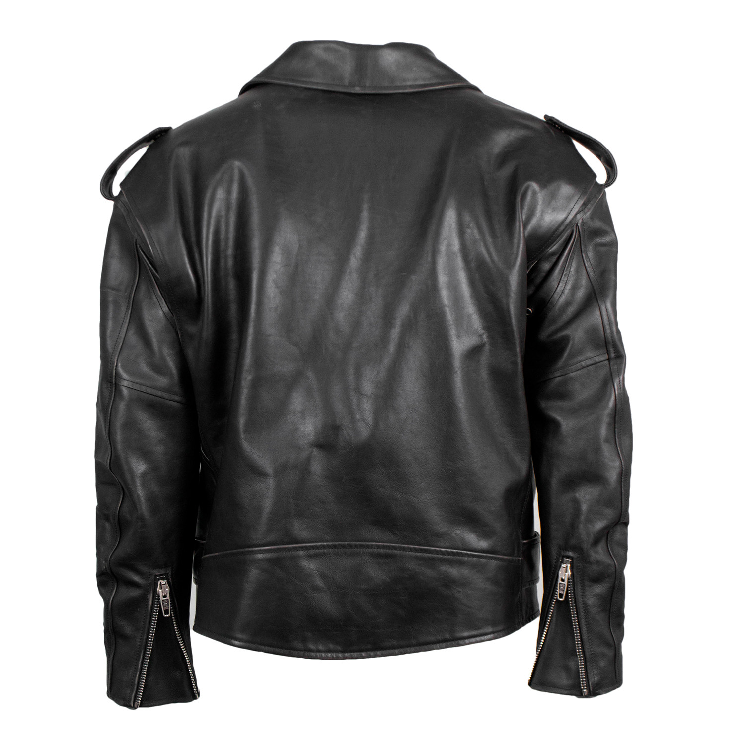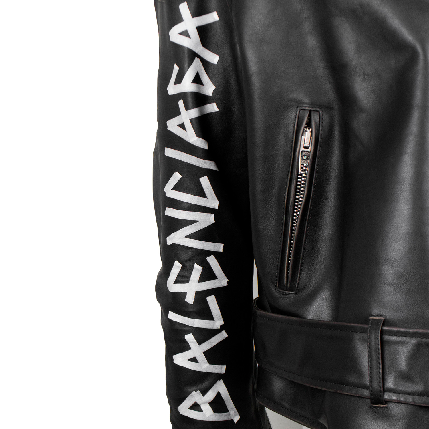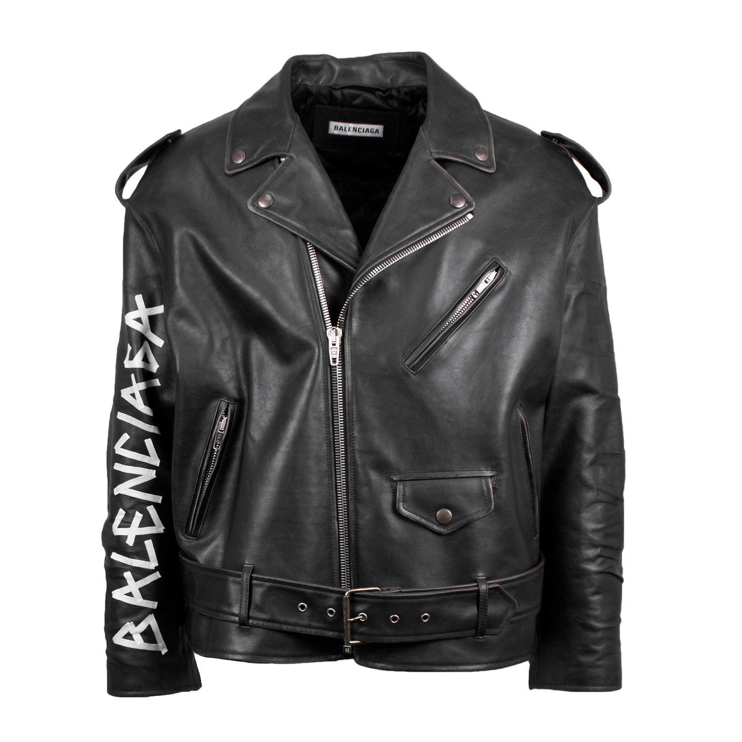 Leather Logo Sleeve Motorcycle Jacket // Black