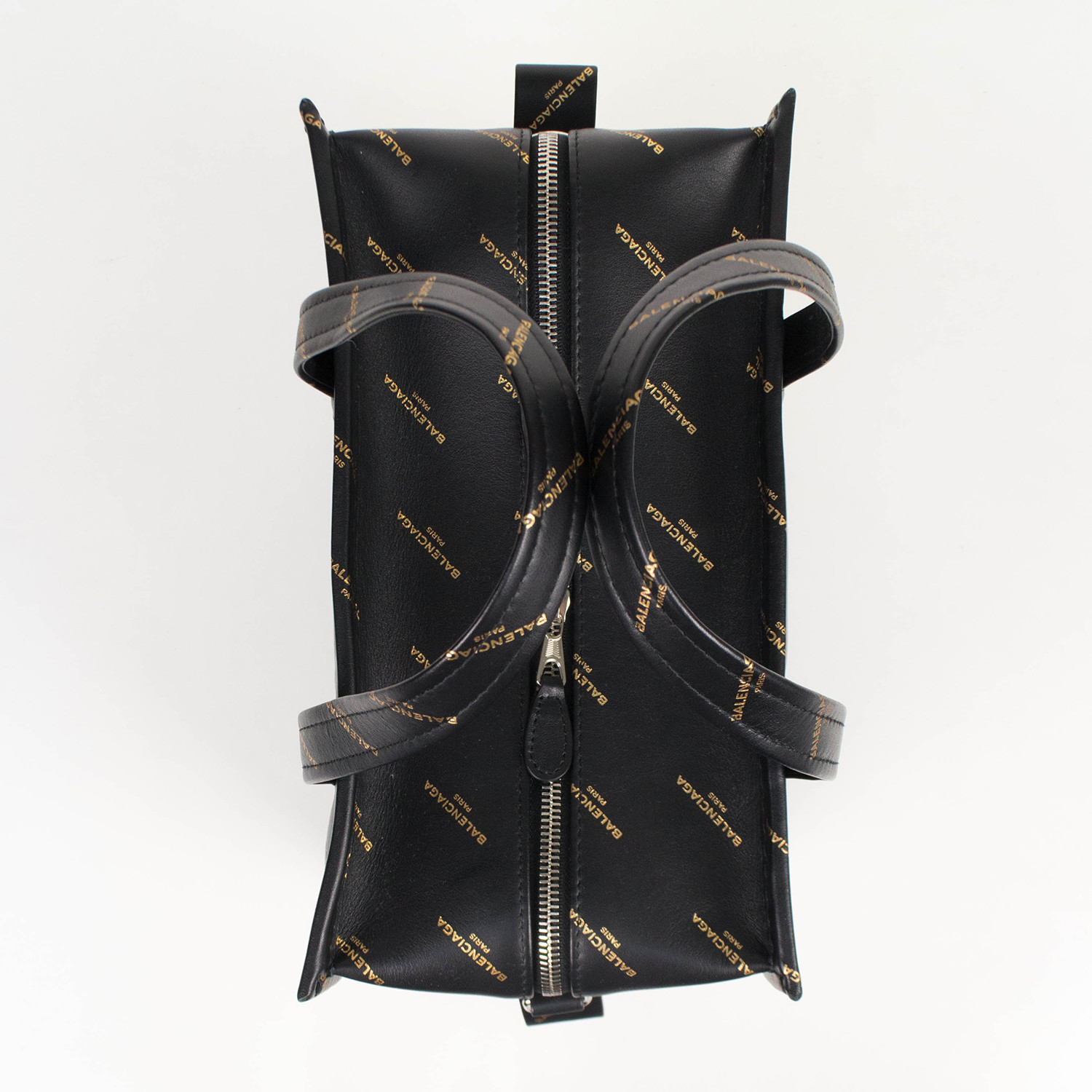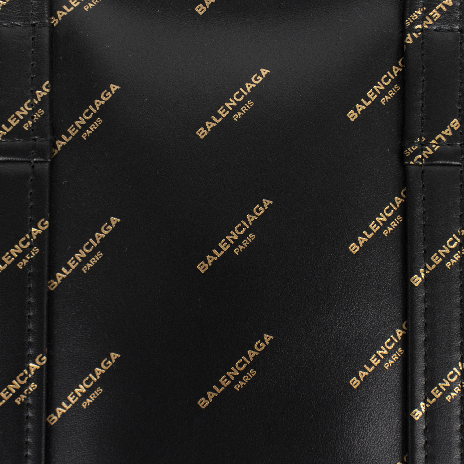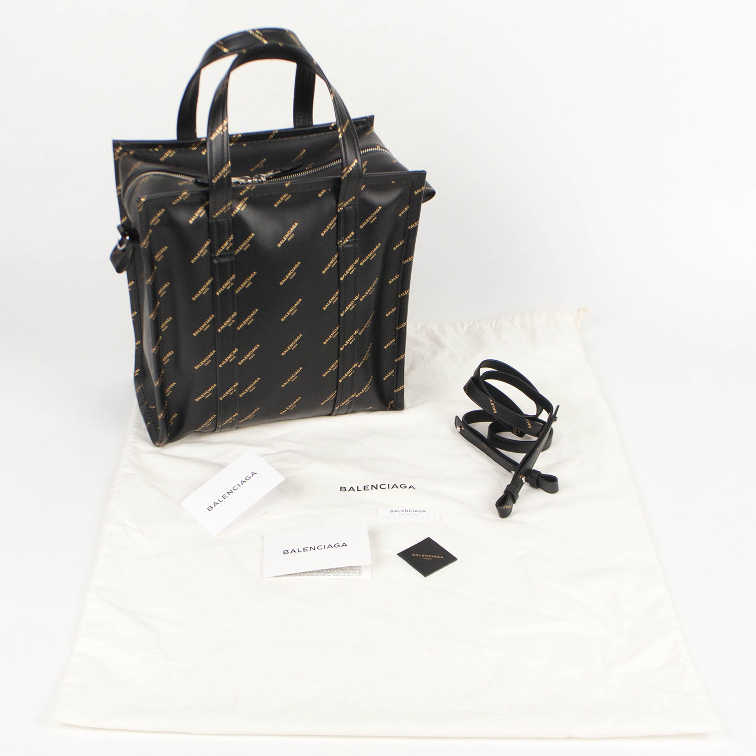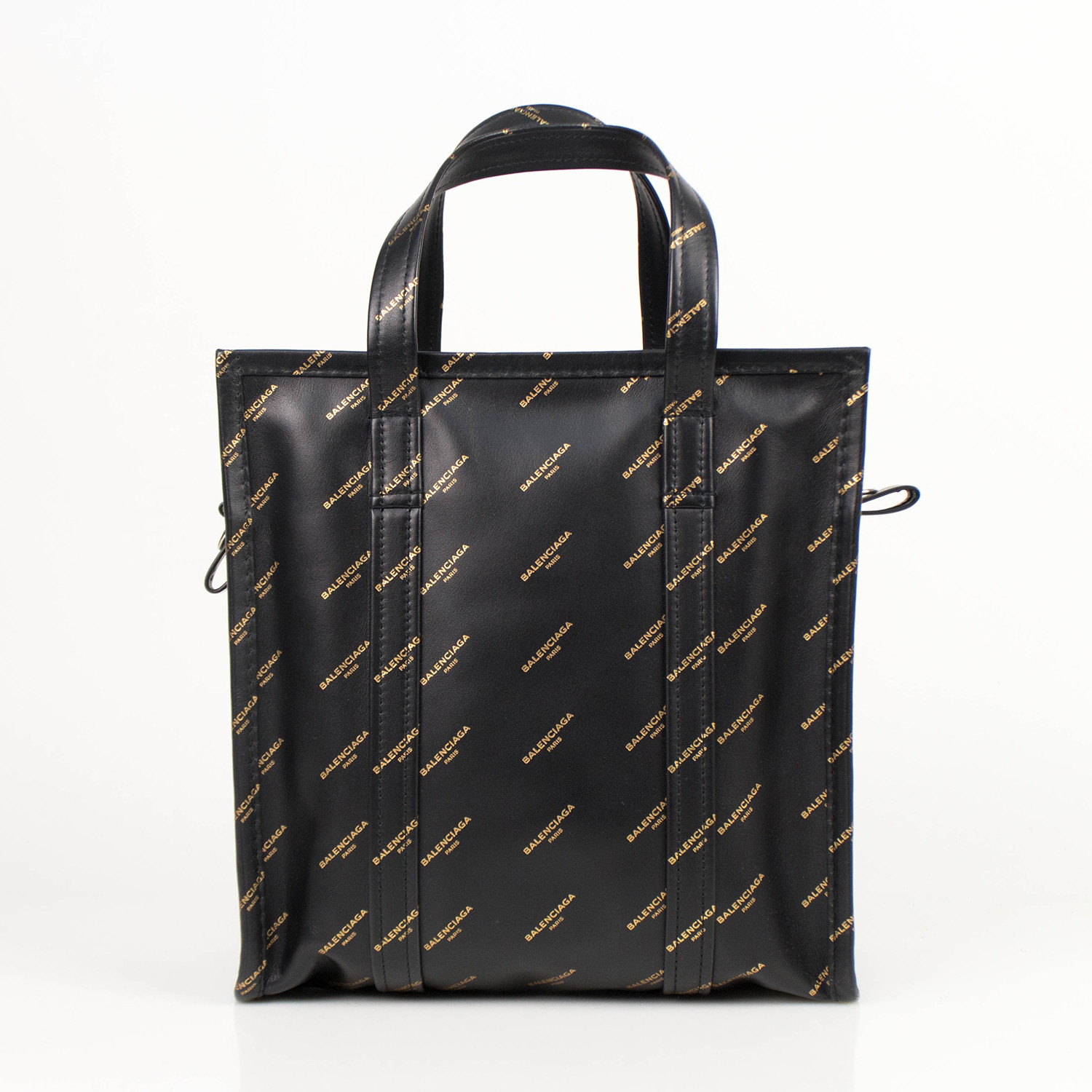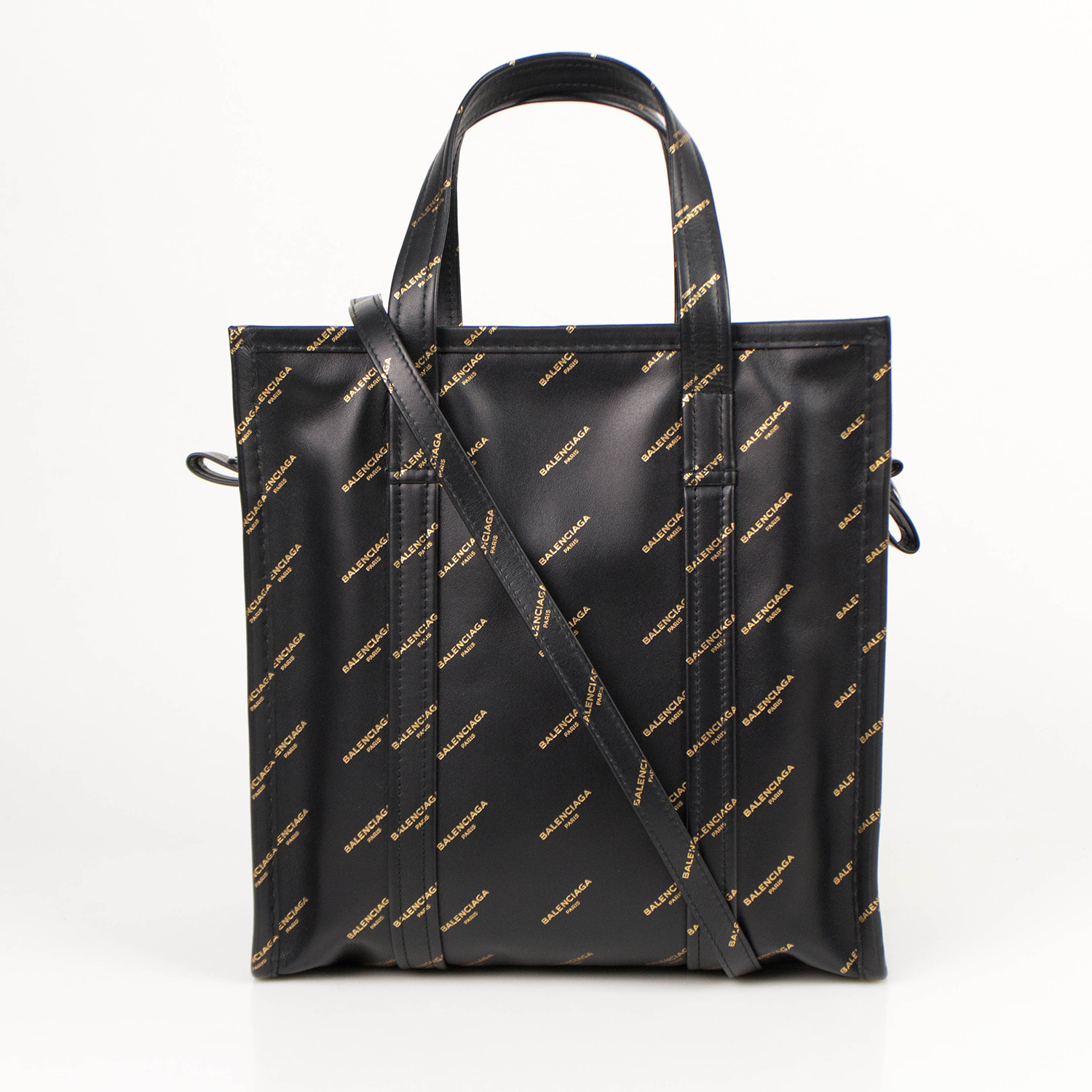 Leather All Over Logo Bazar Shopper Tote Bag // Black