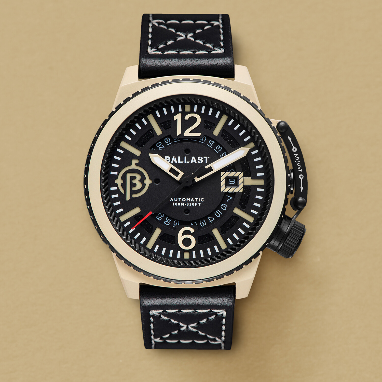 A tribute to submariners and submarines, Ballast watches are heavy duty, rugged, and practical. Driven by design principles including water resistance, functionality, precision, and legibility, the timepieces manufactured by Ballast belong to men who stay calm in the face of every storm.