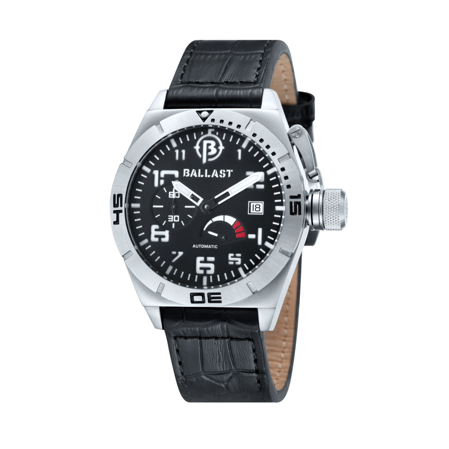 Combine style and function with this Amphion watch, featuring a bold face and beautiful detailing wrapped up in stainless steel and luxurious quality leather. The construction of this Swiss made chronograph features a durable mineral crystal dial window protecting the watch from scratches, and a stainless steel case on a classic leather strap.