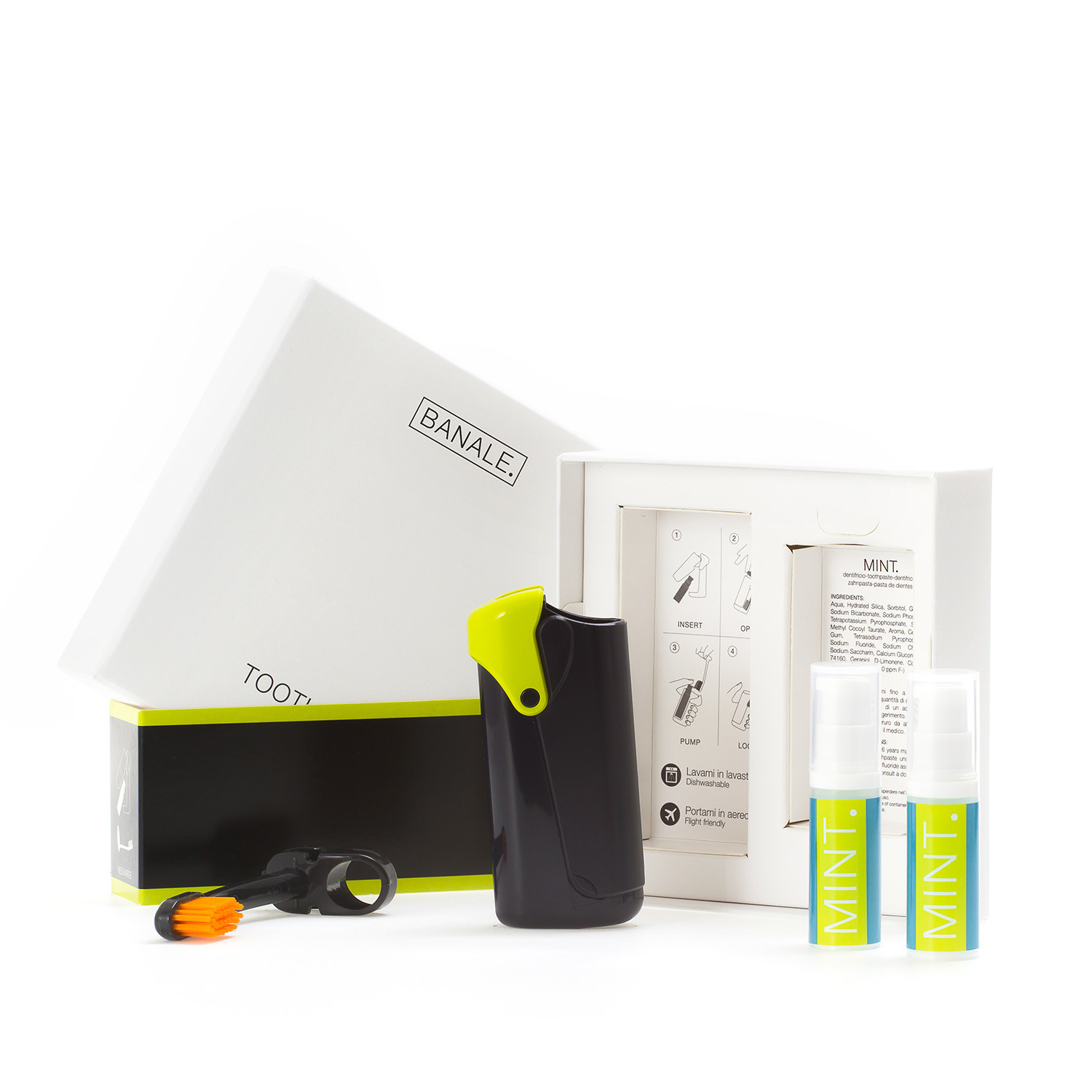 A mini pump of mint toothpaste is integrated into the body of the toothbrush. It's easy to use and manufactured with a special airless technology that prevents the toothpaste from drying out. Each mini pump contains 50 doses of toothpaste, each one minty and perfect for keeping your mouth clean.