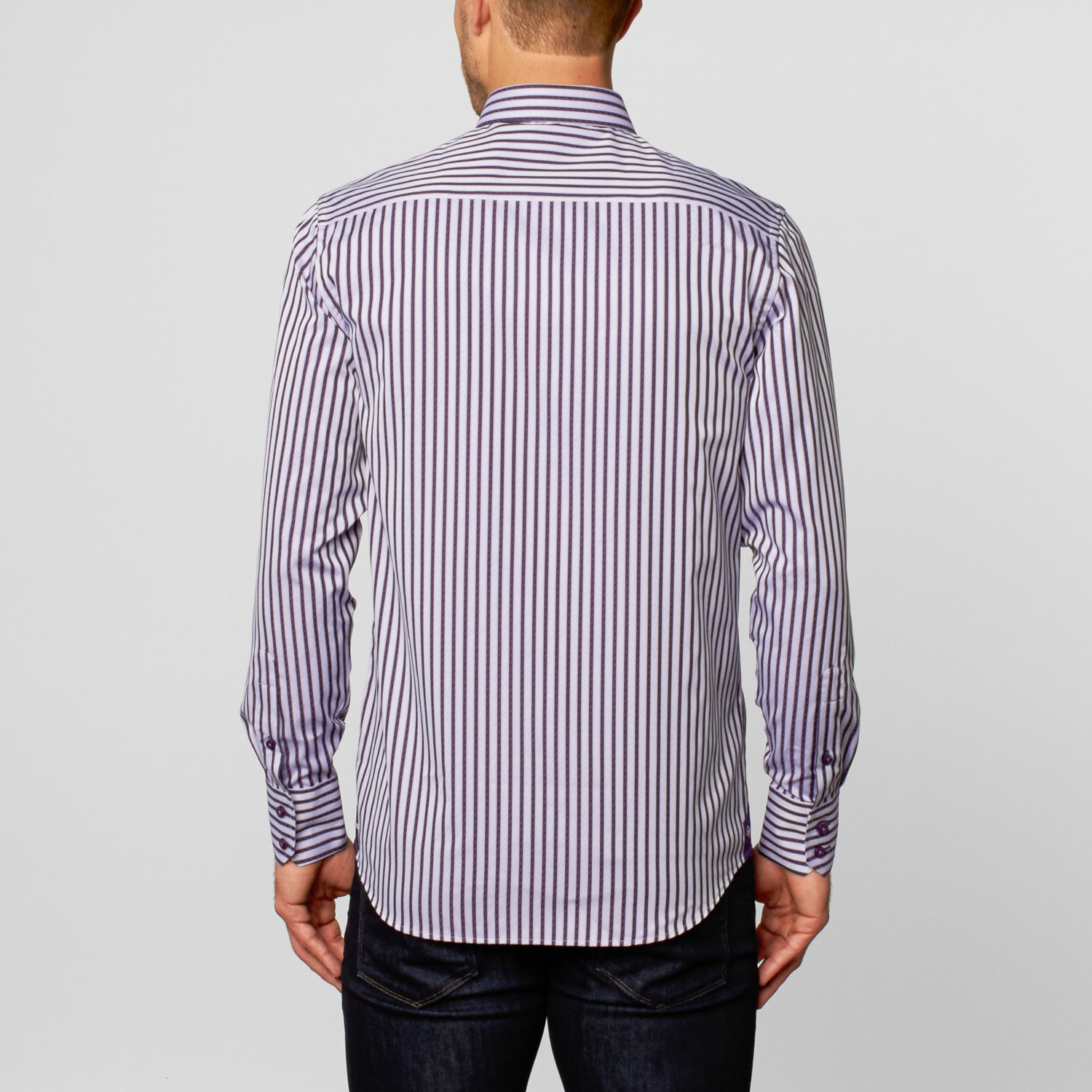 Cement your status as a true tastemaker with this bold button-up. With its flaunt-worthy contrast trimming at collar and cuffs, this shirt makes the transition from work to play with utter aplomb.