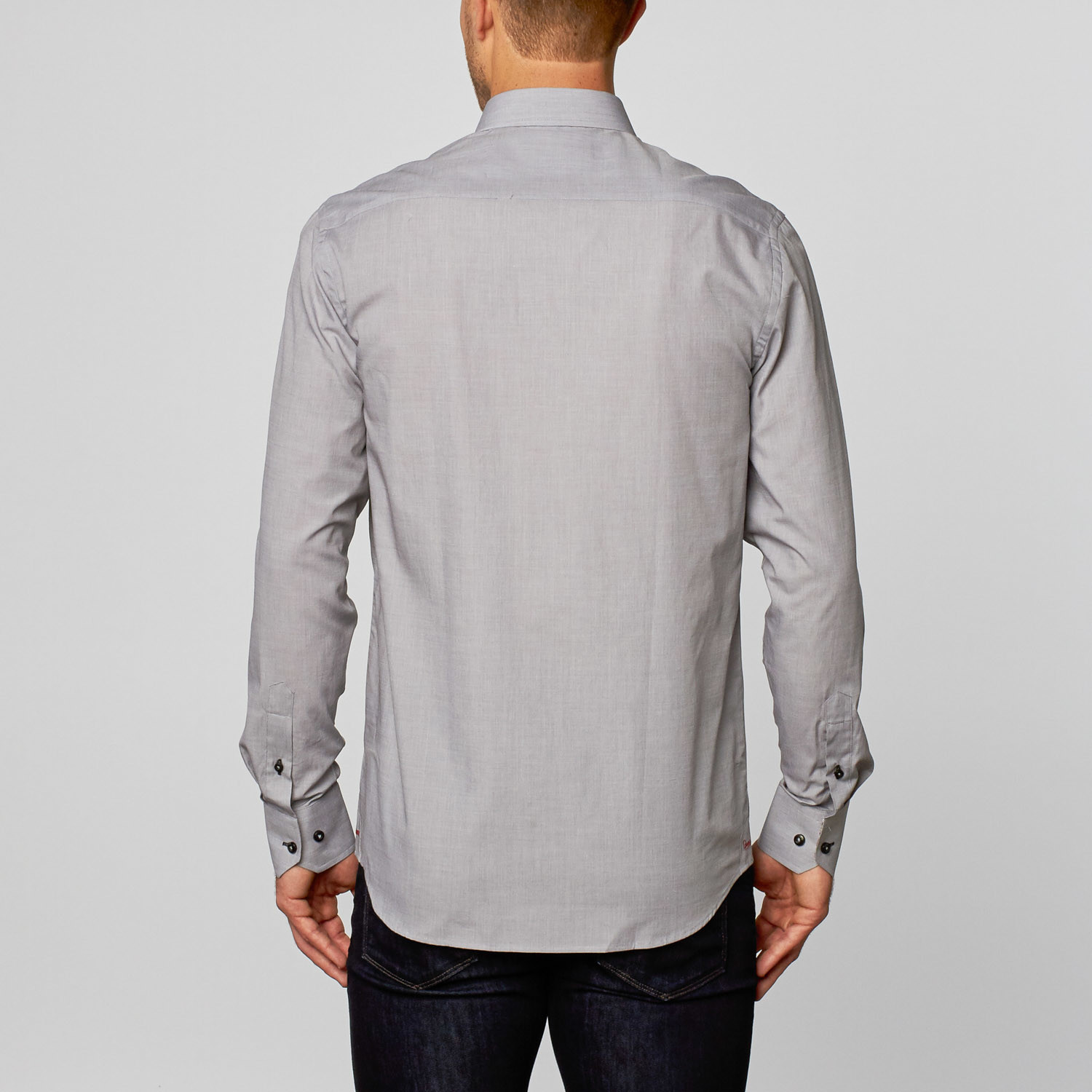 Coogi // Solid Button-Up + Paisley Trim // Light Grey