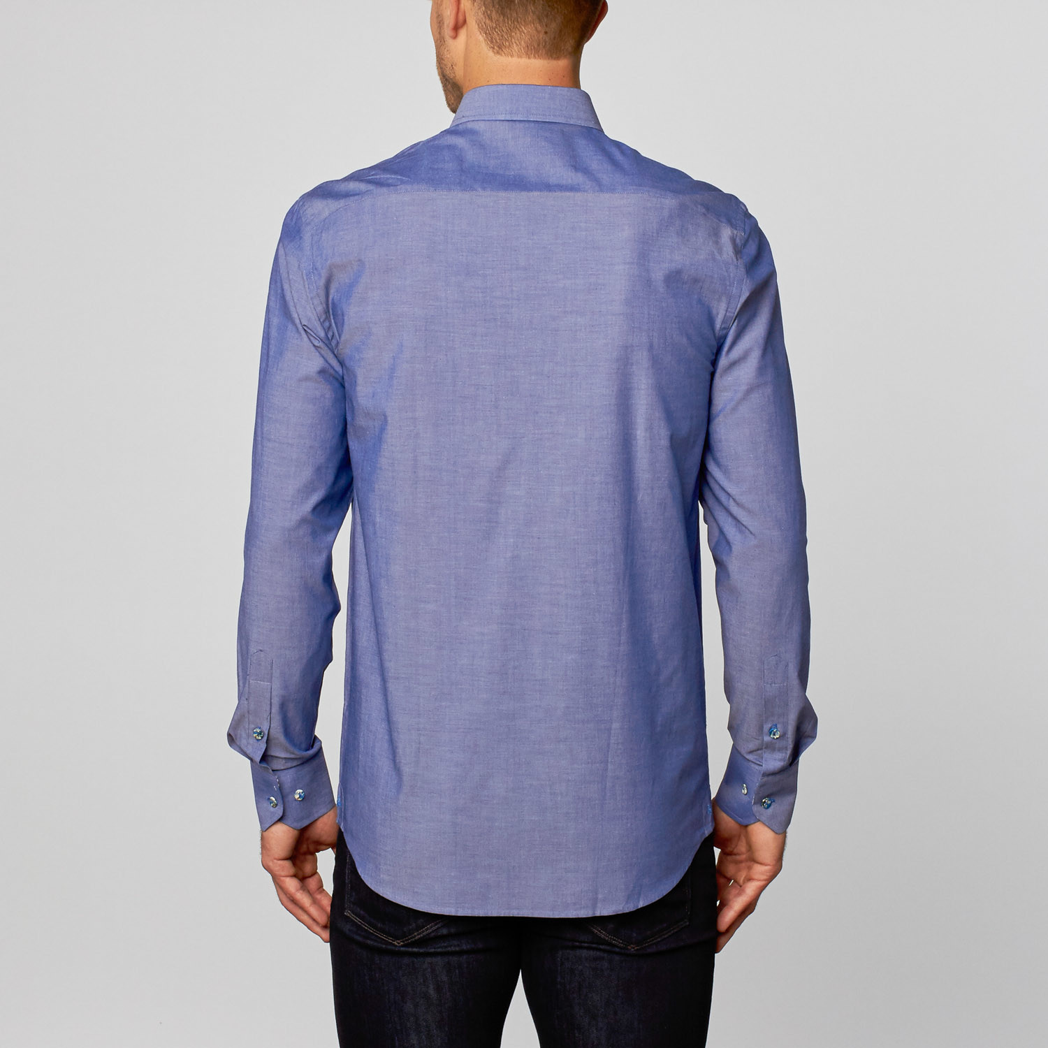 Solid Button-Up + Paisley Trim // Chambray