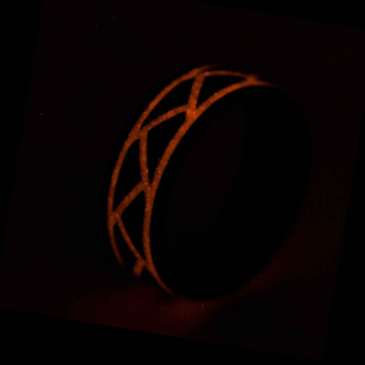 This unmistakable ring is made of black-colored titanium for a modern and simple look, but features a colored resin inlay that absorbs light during the day, so it can emit a soft glow at night. Keep it classy in the all day long, and party once the lights go out!
