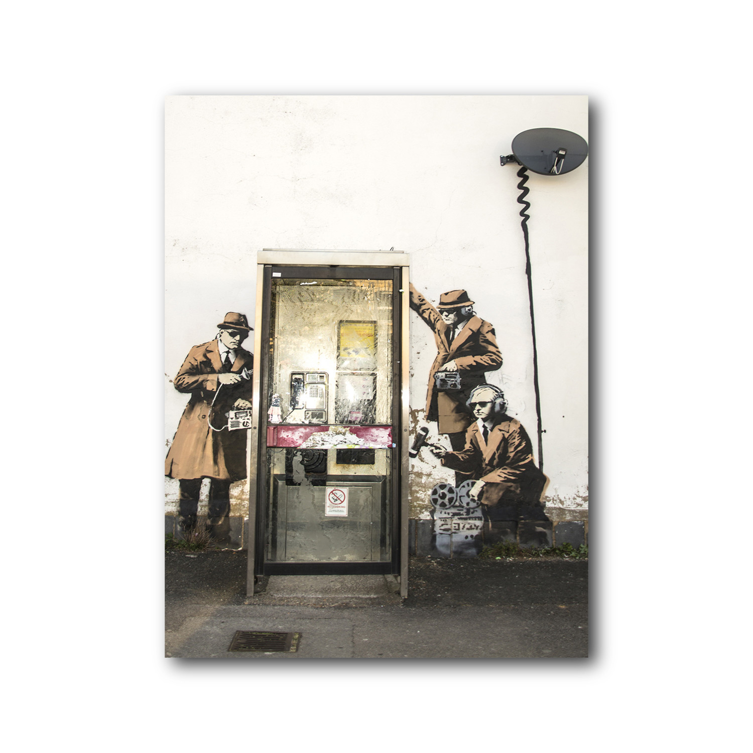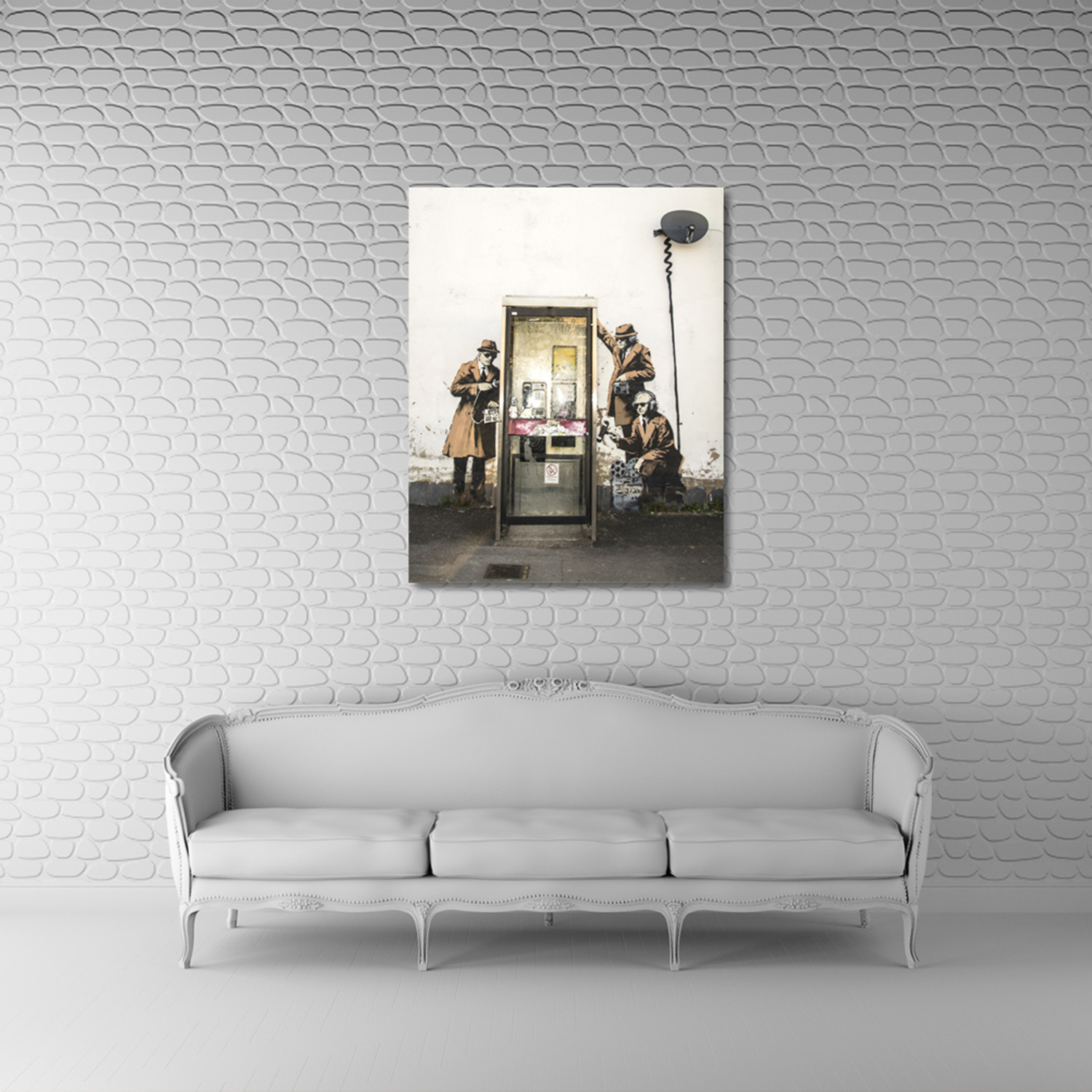Aluminum is a perfectly smooth surface that reflects the images in high contrast with vibrant colors that pop in striking hi-res detail. These Banksy images are infused into the aluminum and specially coated, making them ultra UV resistant, difficult to scratch, and waterproof. This provides your image with added depth and dimension for a modern look which is finished by its edge-to-edge prints, routed edges and safe corners.The modern and clean look of metal serves as the perfect medium for Banksy's visionary artwork.