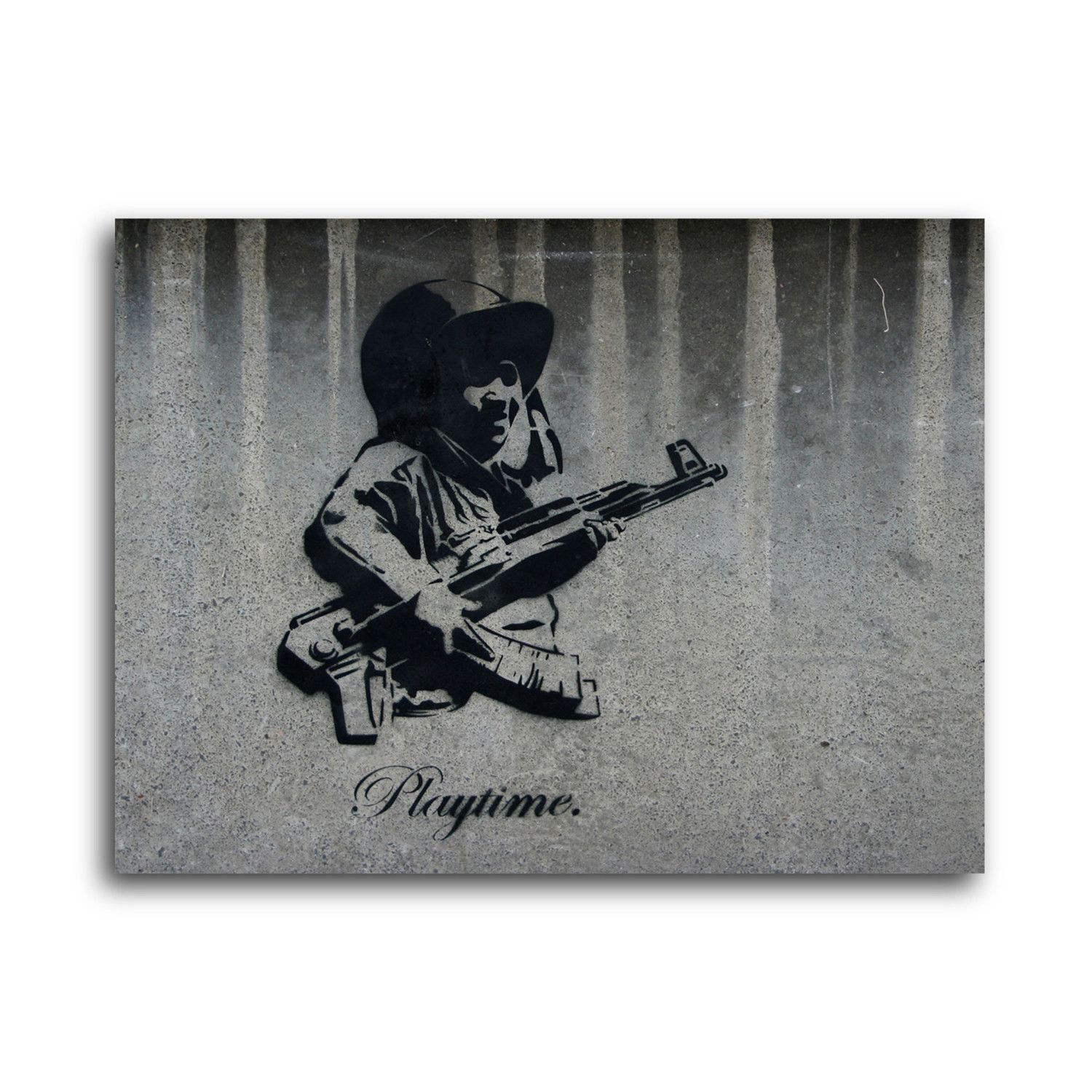 Aluminum is a perfectly smooth surface that reflects the images in high contrast with vibrant colors that pop in striking hi-res detail. These Banksy images are infused into the aluminum and specially coated, making them ultra UV resistant, difficult to scratch, and waterproof. This provides your image with added depth and dimension for a modern look which is finished by its edge-to-edge prints, routed edges and safe corners.The modern and clean look of metal serves as the perfect medium for Banksy's visionary artwork.