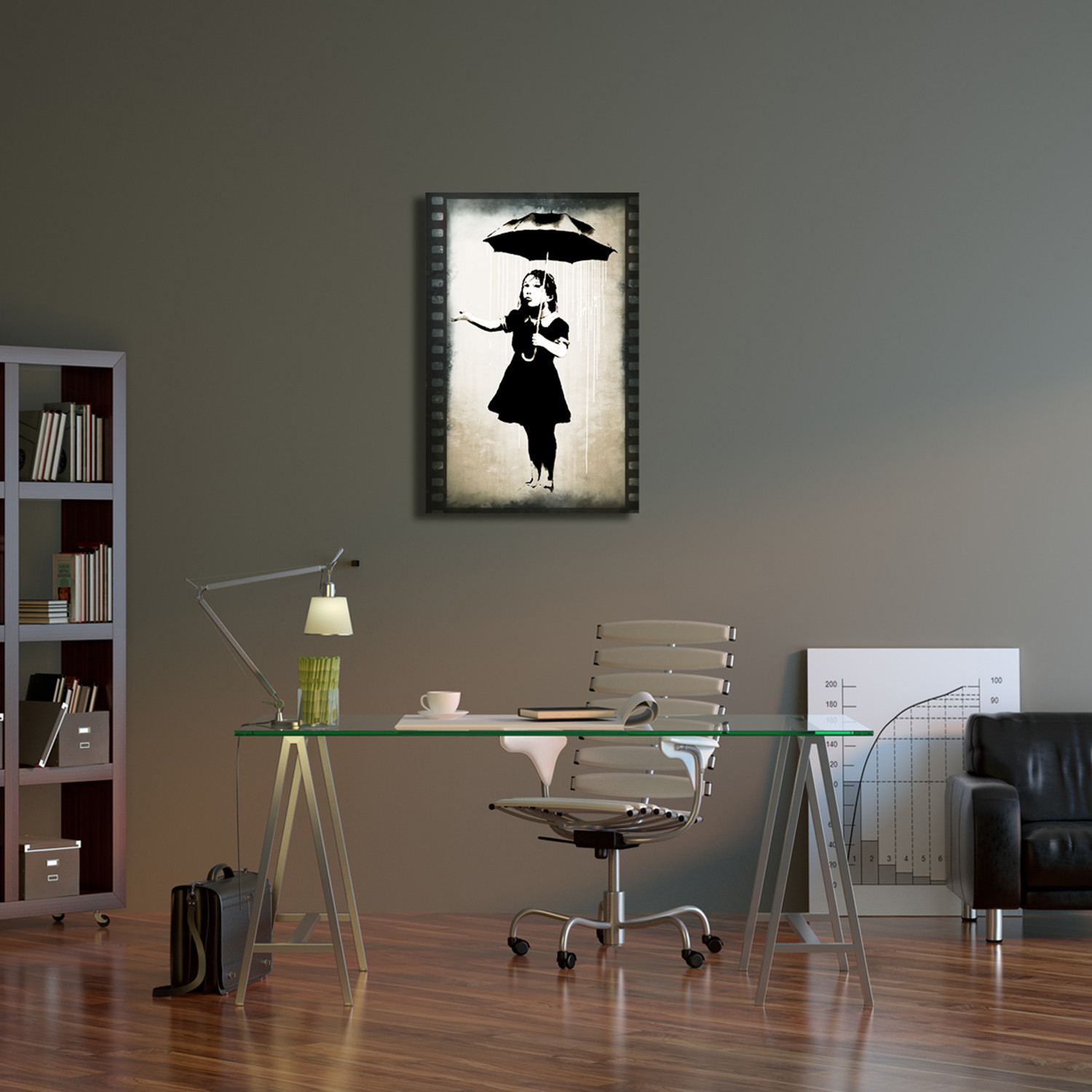 Aluminum is a perfectly smooth surface that reflects the images in high contrast with vibrant colors that pop in striking hi-res detail. These Banksy images are infused into the aluminum and specially coated, making them ultra UV resistant, difficult to scratch, and waterproof. This provides your image with added depth and dimension for a modern look which is finished by its edge-to-edge prints, routed edges and safe corners.The modern and clean look of metal serves as the perfect medium for Banksy's visionary artwork.
