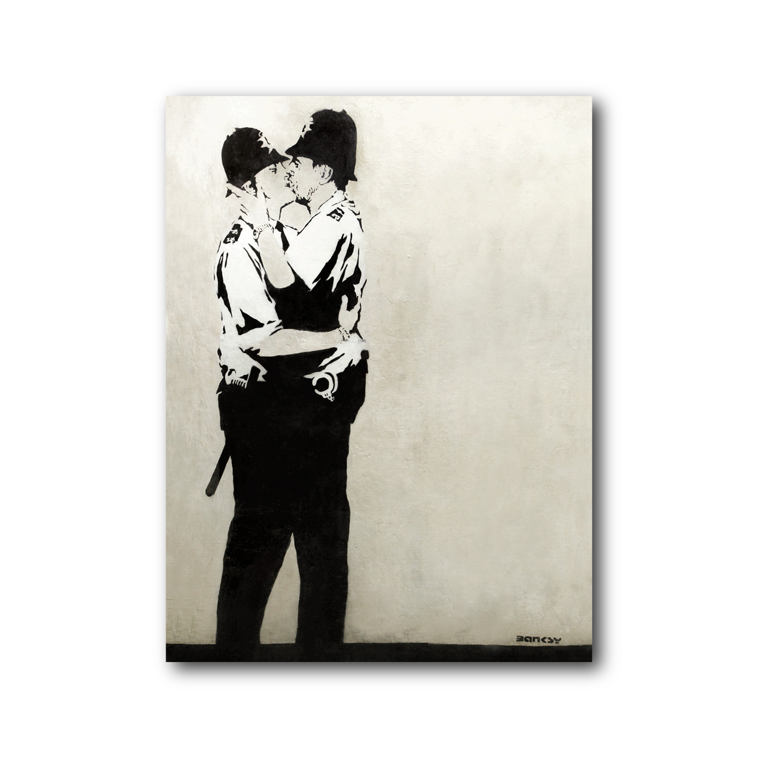 Aluminum is a perfectly smooth surface that reflects the images in high contrast with vibrant colors that pop in striking hi-res detail. These Banksy images are infused into the aluminum and specially coated, making them ultra UV resistant, difficult to scratch, and waterproof. This provides your image with added depth and dimension for a modern look which is finished by its edge-to-edge prints, routed edges and safe corners.The modern and clean look of metal serves as the perfect medium for Banksy's visionary artwork.