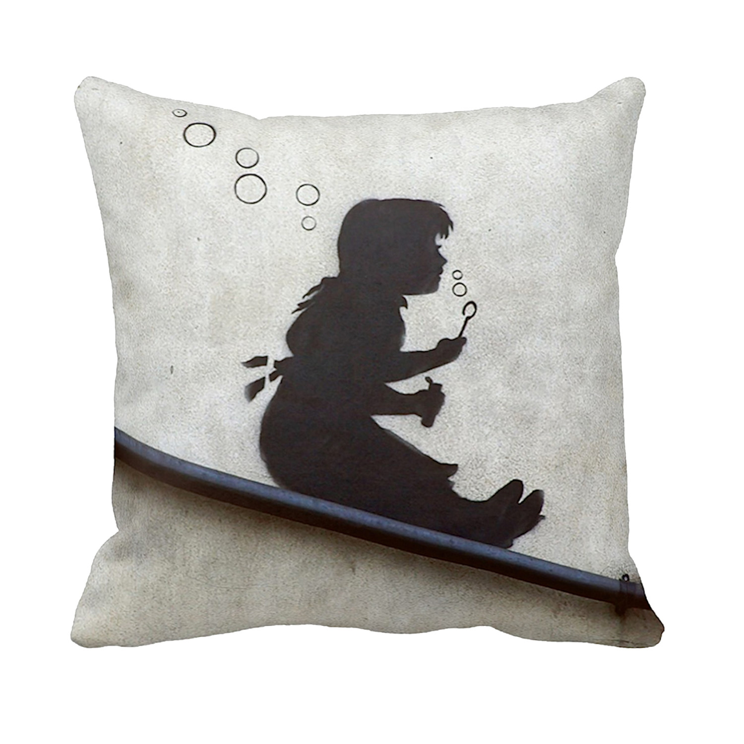 Banksy is a pseudonymous English graffiti artist, political activist, film director, and painter. His satirical street art and subversive epigrams combine dark humor with graffiti executed in a distinctive stenciling technique. Now, you can enjoy a little bit of Banksy's creative street style in the comfort of your own home with this down alternative pillow that has been printed with the artist's best pieces.