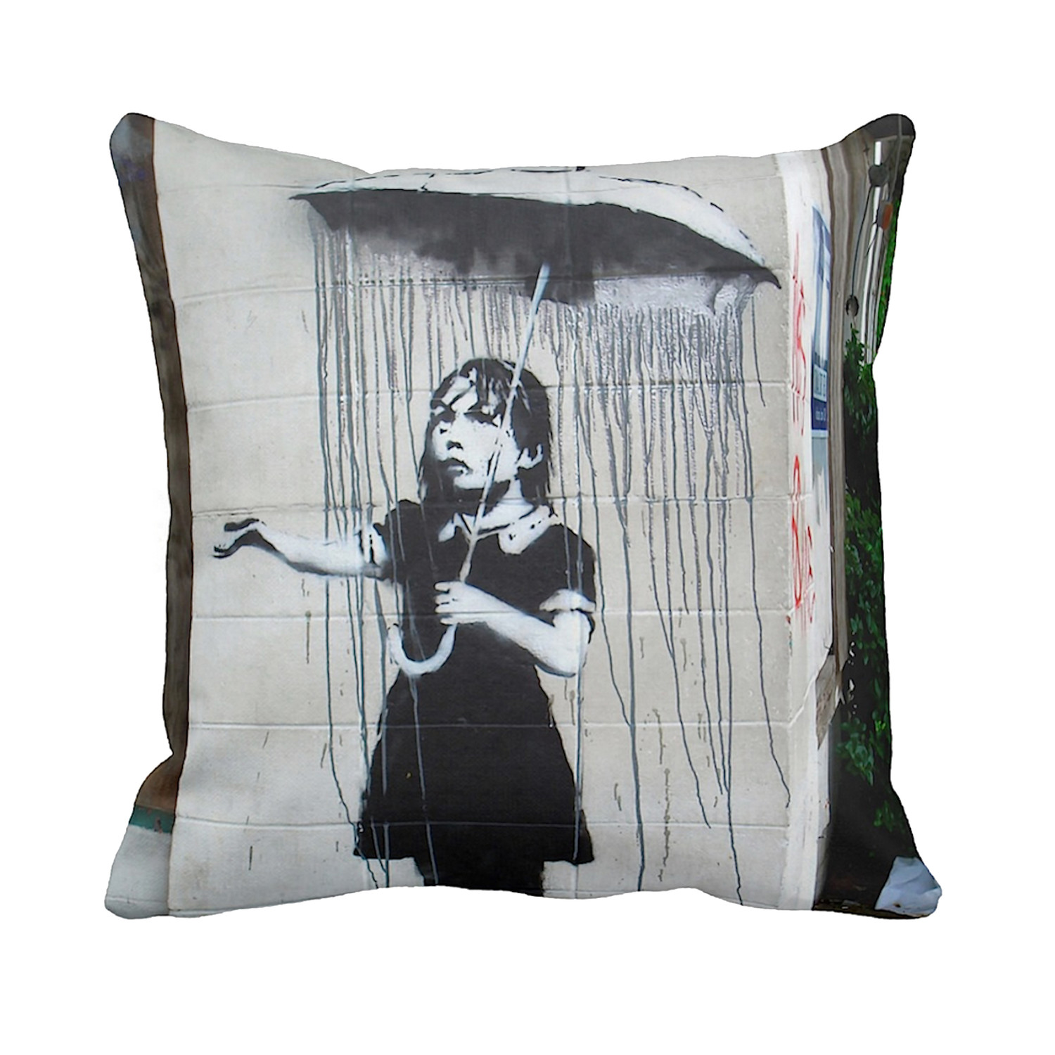 Banksy is a pseudonymous English graffiti artist, political activist, film director, and painter. His satirical street art and subversive epigrams combine dark humor with graffiti executed in a distinctive stenciling technique. Now, you can enjoy a little bit of Banksy's creative street style in the comfort of your own home with this down alternative pillow that has been printed with the artist's best pieces.
