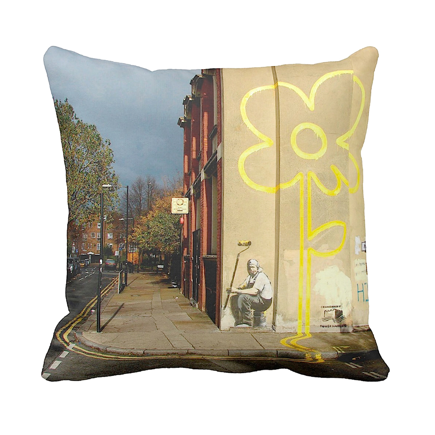 Banksy is a pseudonymous English graffiti artist, political activist, film director, and painter. His satirical street art and subversive epigrams combine dark humor with graffiti executed in a distinctive stenciling technique. Now, you can enjoy a little bit of Banksy's creative street style in the comfort of your own home with this down alternative pillow that has been printed with the artist's best pieces.