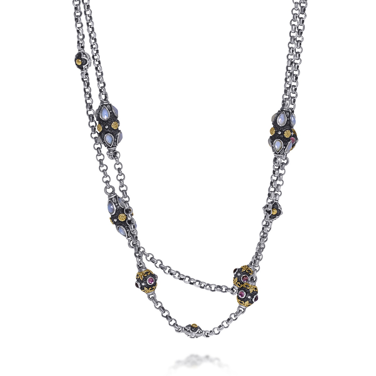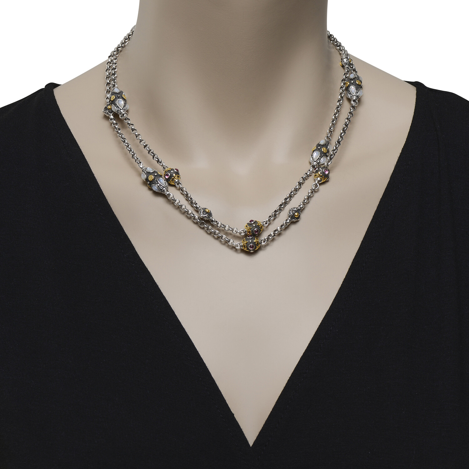 Konstantino Nemesis Sterling Silver + 18K Yellow Gold Mother of Pearl Station Necklace // 18" // Store Display