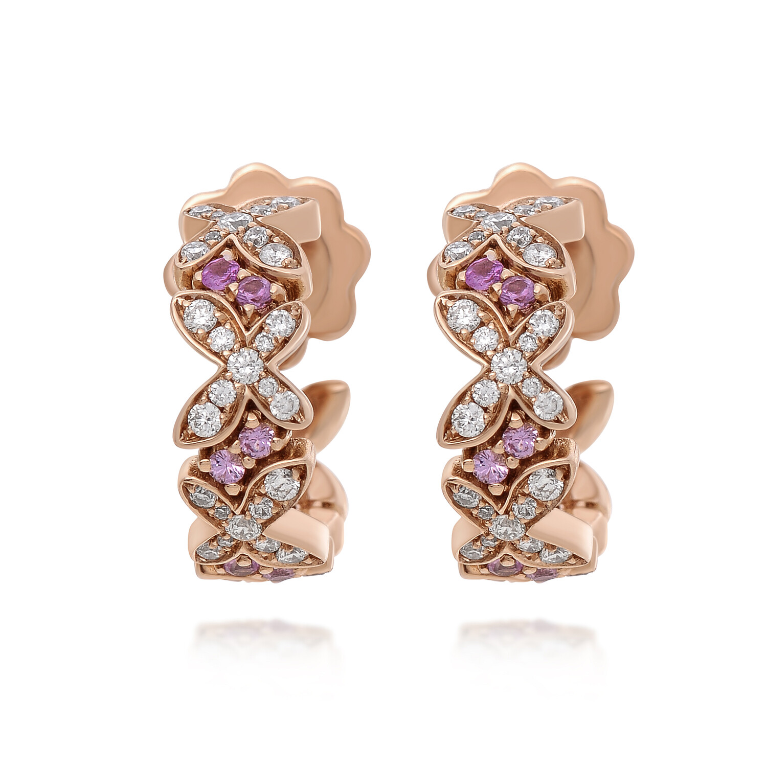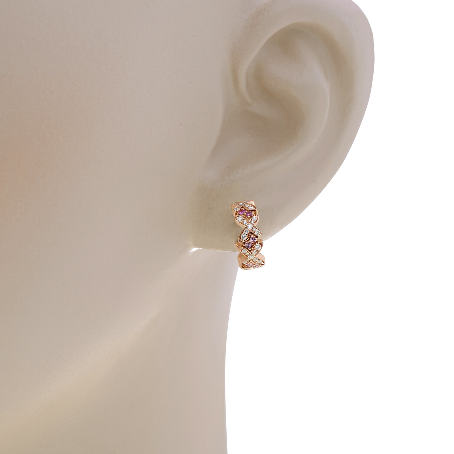 Mimi Milano Freevola 18K Rose Gold Diamond + Pink Sapphire Huggie Earrings // Store Display