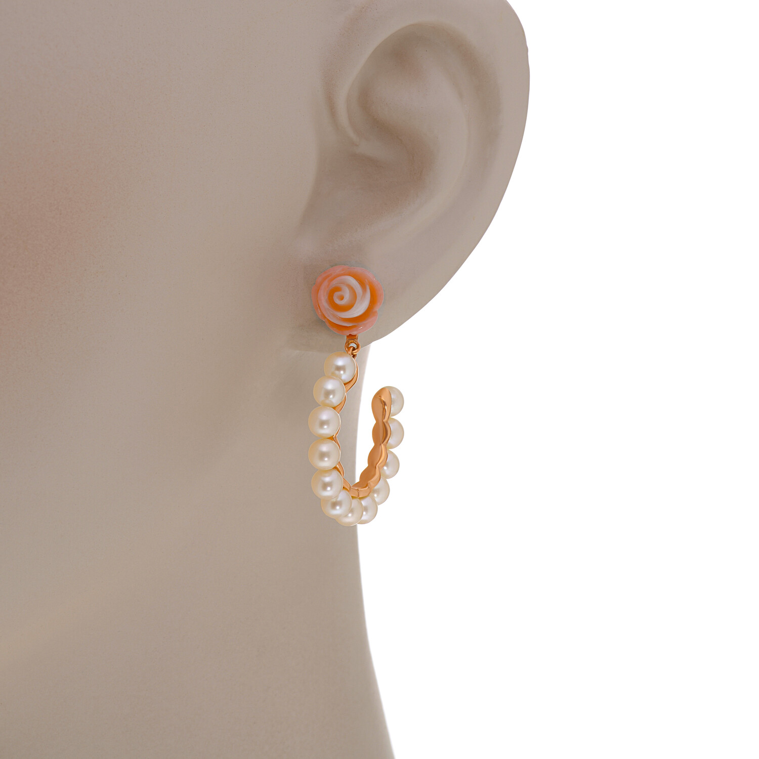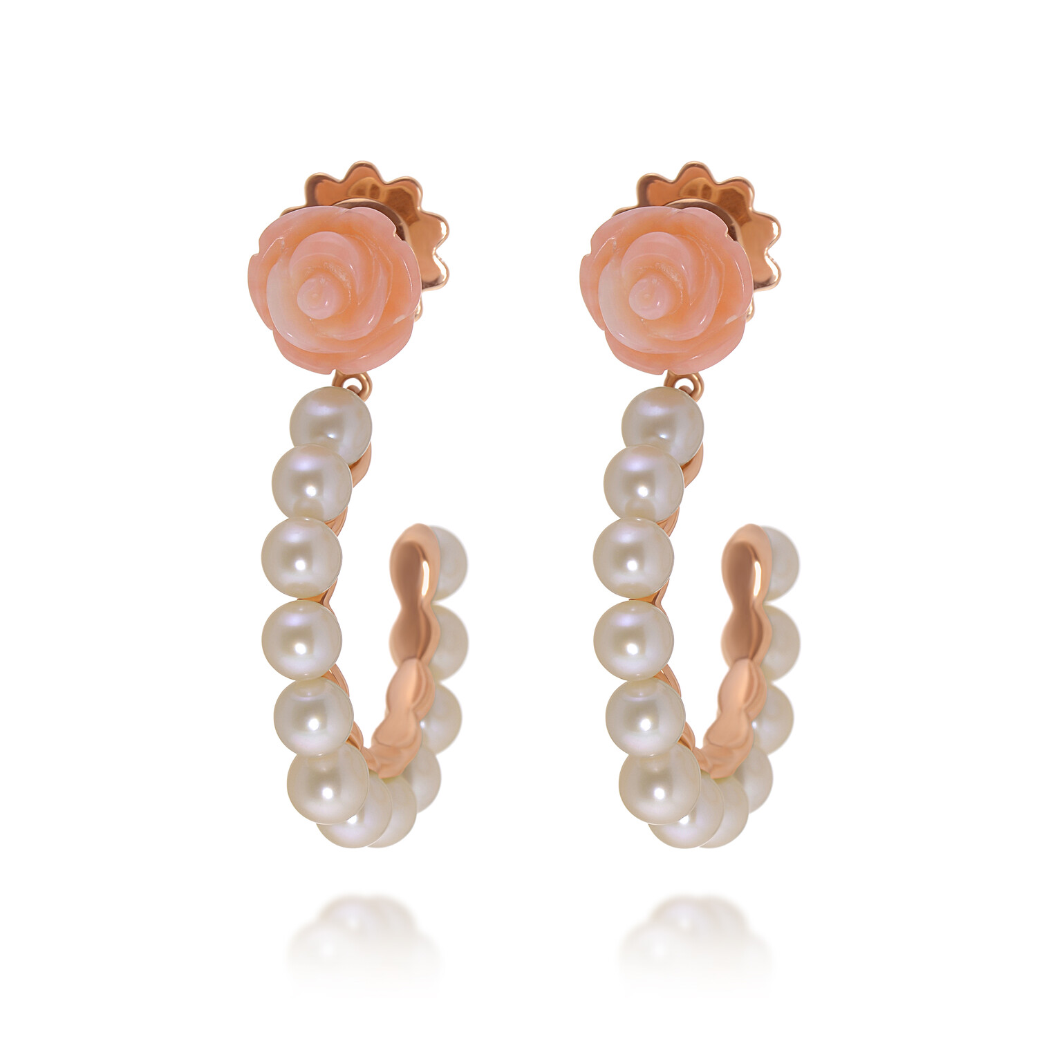 Mimi Milano Grace 18K Rose Gold Pink Cultured Pearl + Pink Color Pastel Drop Earrings // Store Display
