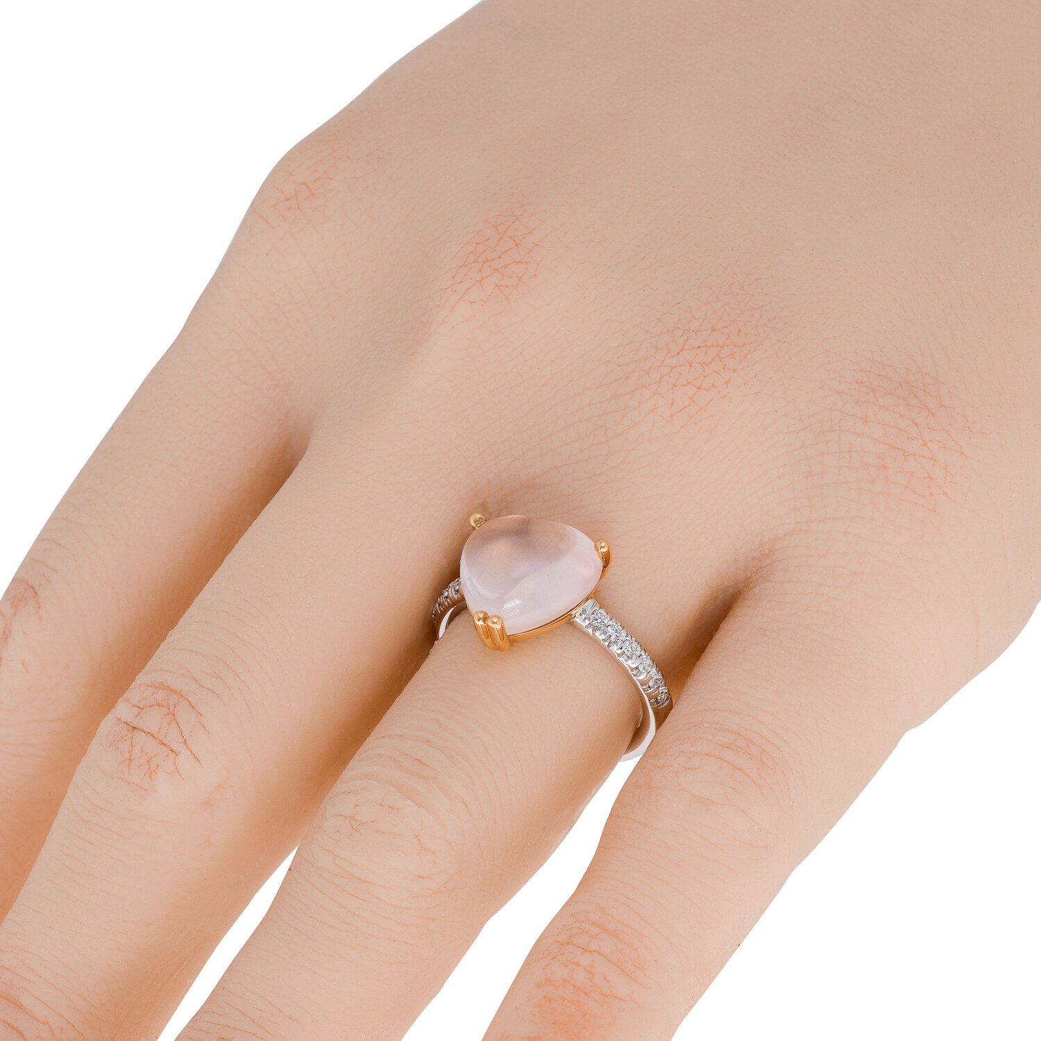 Mimi Milano Juliet 18K White Gold + 18K Rose Gold Pink Quartz + Diamond Band Ring // Ring Size: 6.75 // Store Display