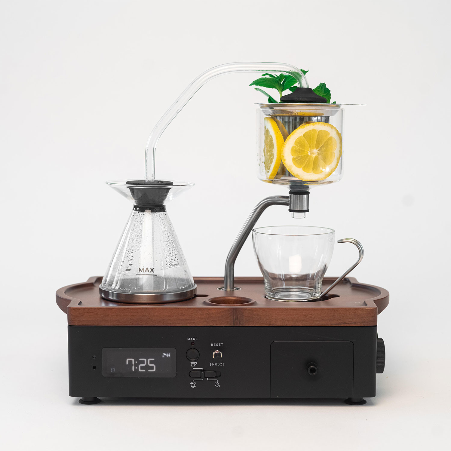 The Barisieur 2.0 is a premium alarm clock that eases you into your morning with the soothing sounds of bubbling water along with the smell of the freshly brewed coffee or loose leaf tea. Inspired by a combination of the modern ritual of filter coffee with the iconic vinyl record player, it offers a unique and nostalgic experience. The design was born with a digital detox in mind, where the design language balances between simplicity and mystified alchemy.