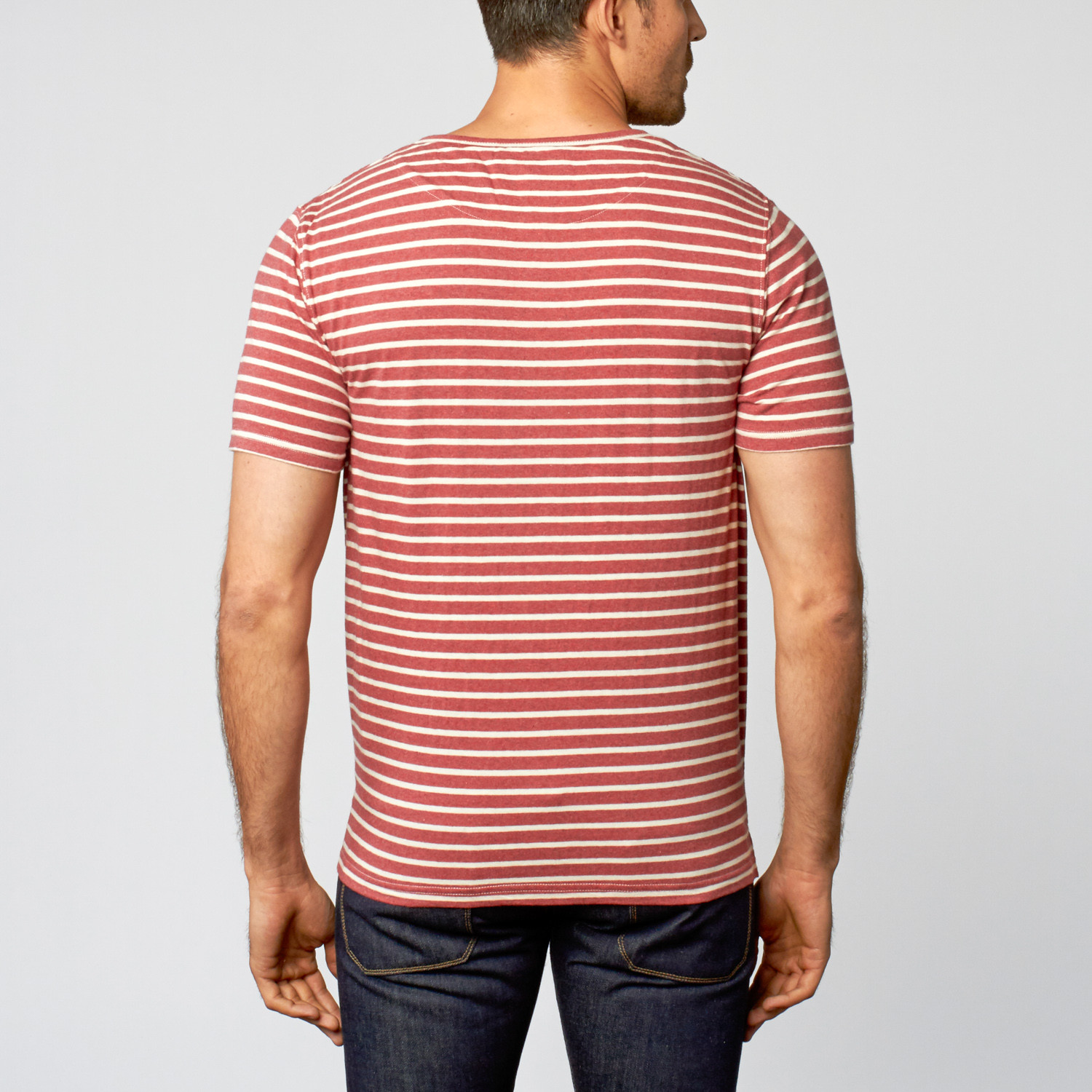 A timeless classic updated with modern twists, the Heather Stripe Henley Tee is an easy way to dress. A little preppy, this piece features a henley neck and a heathered blocked stripe.