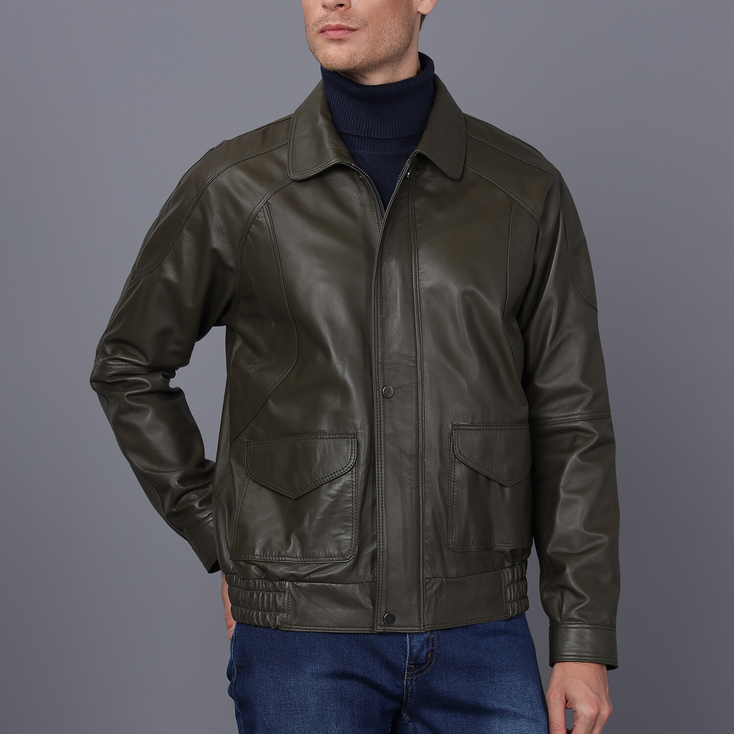 Bomber Leather Jacket // Green