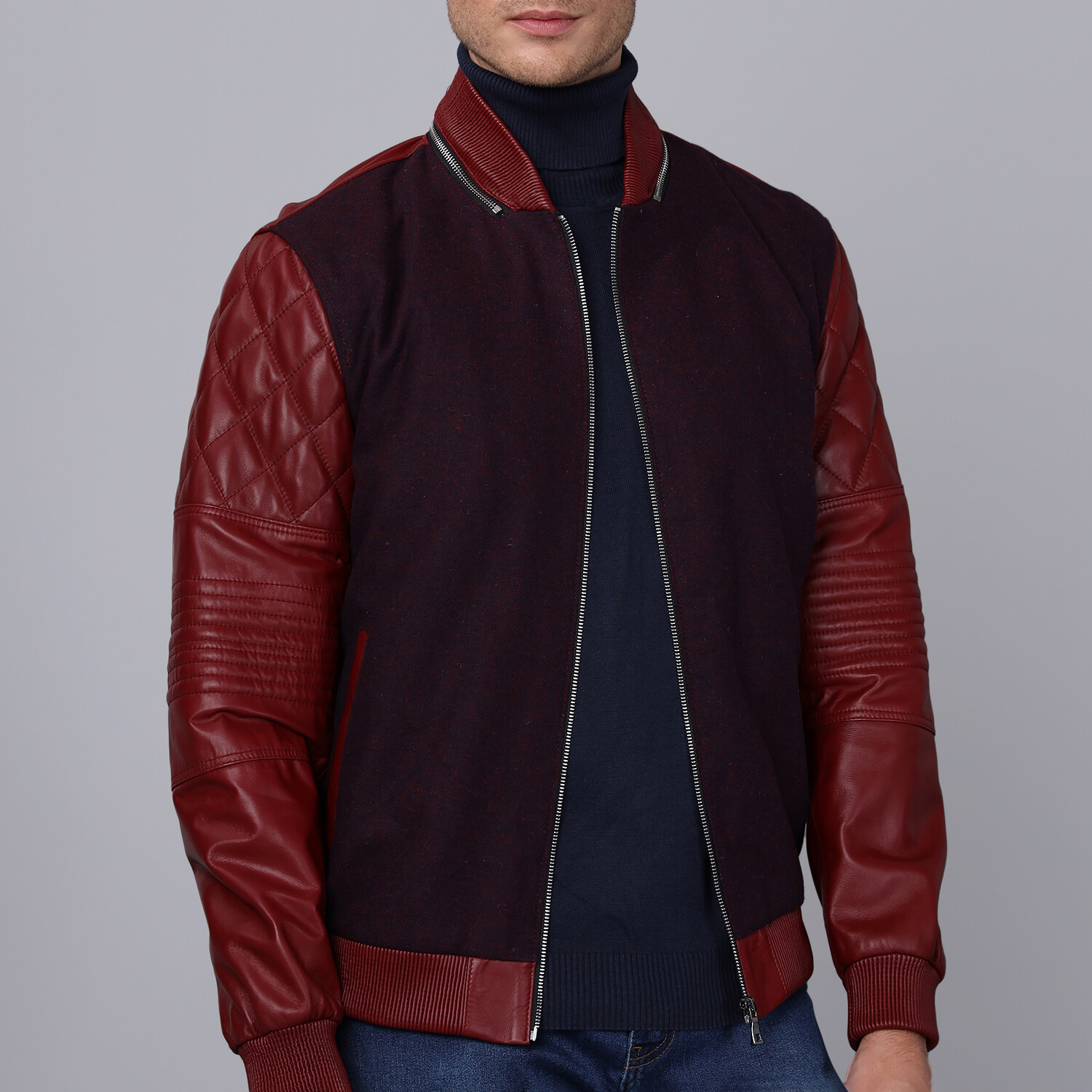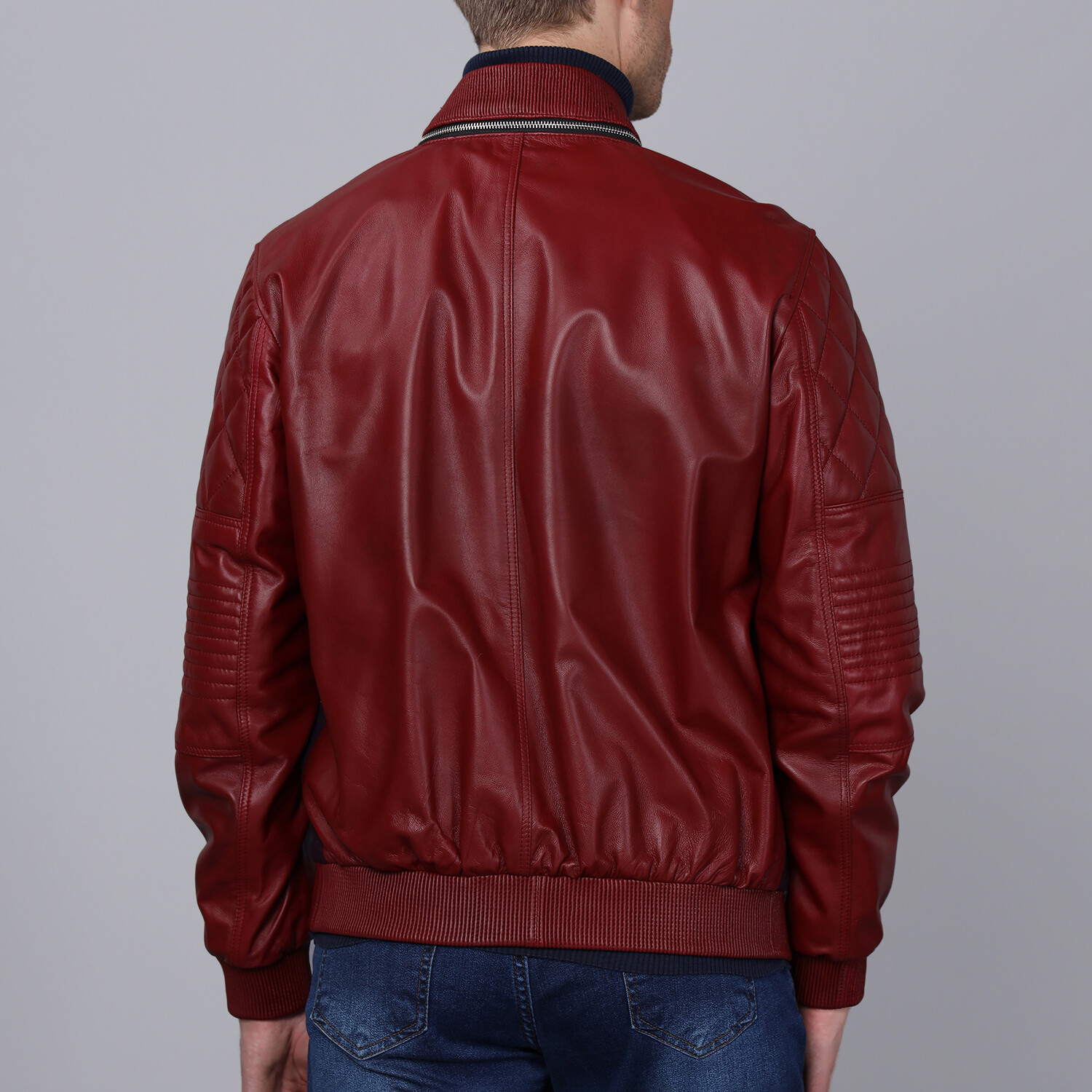 Bomber Quilted Arms Leather Jacket // Burgundy