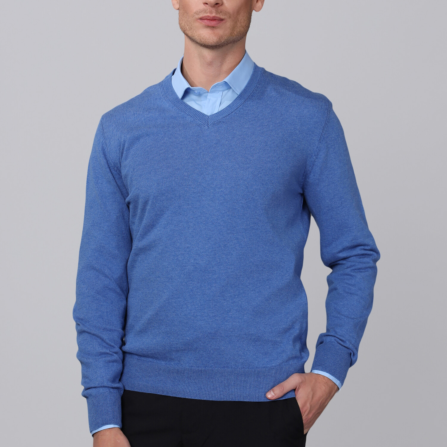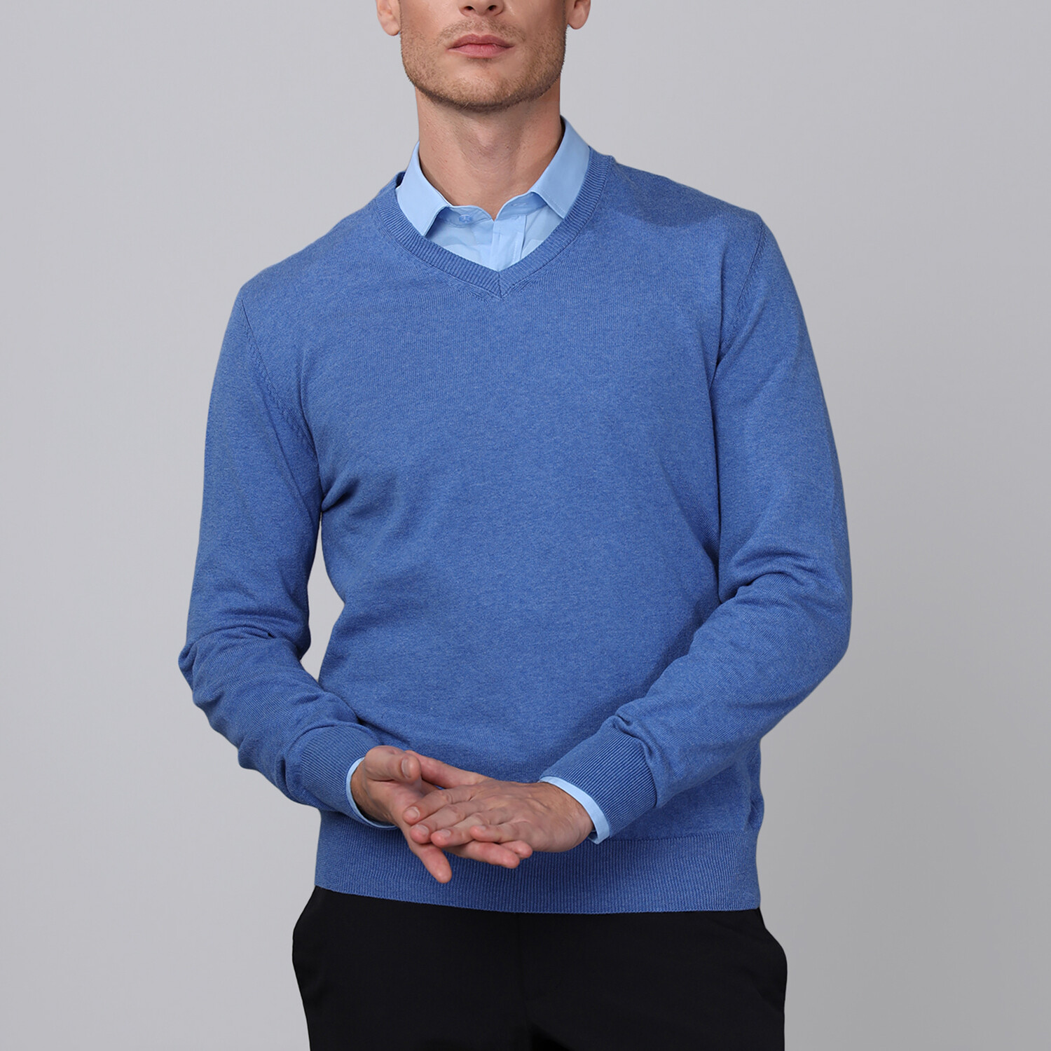 V Neck Pullover // Blue Melange