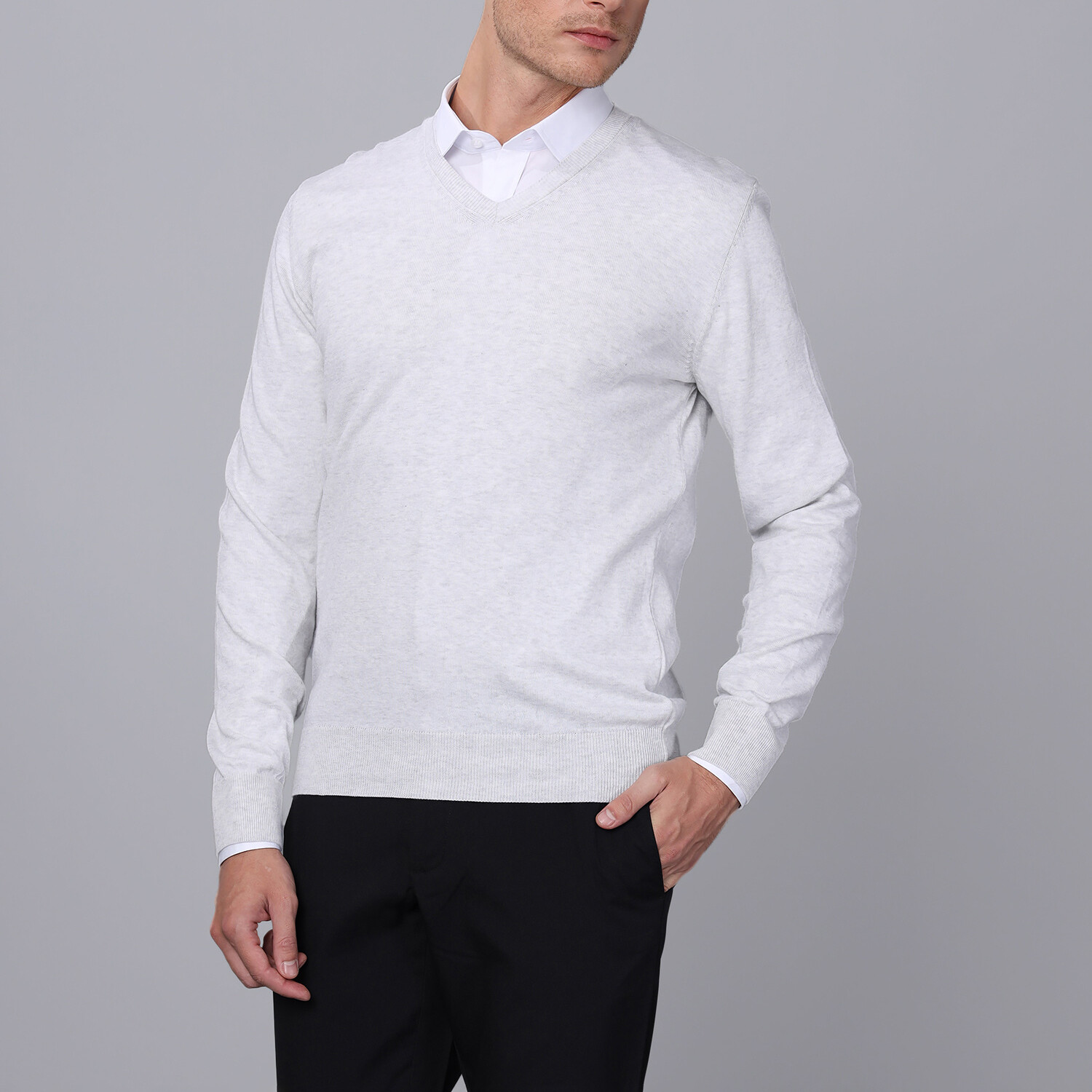 V Neck Pullover // Ecru Melange