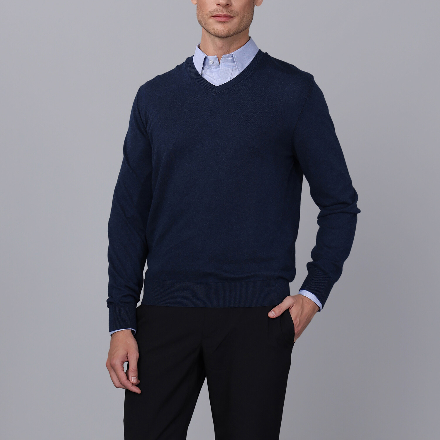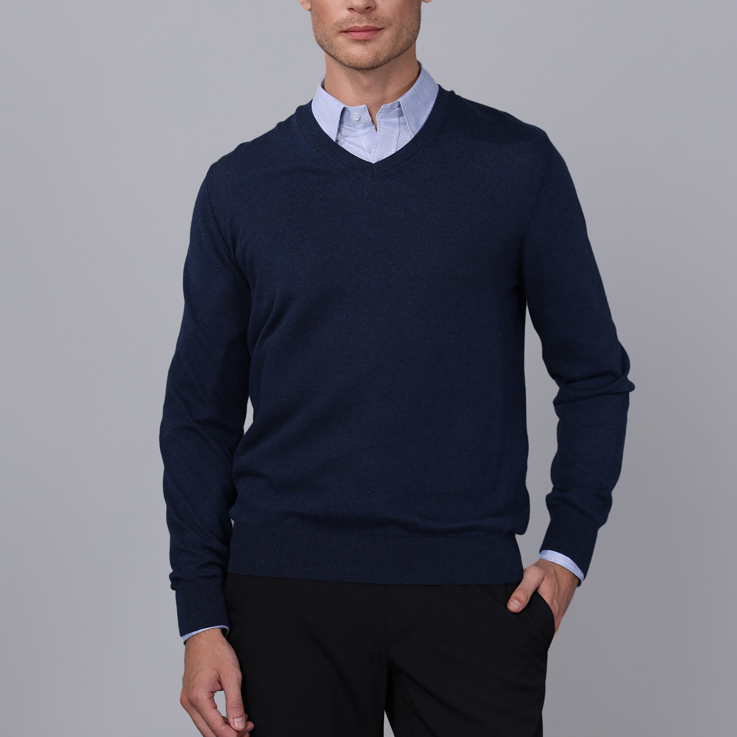 V Neck Pullover // Navy Melange