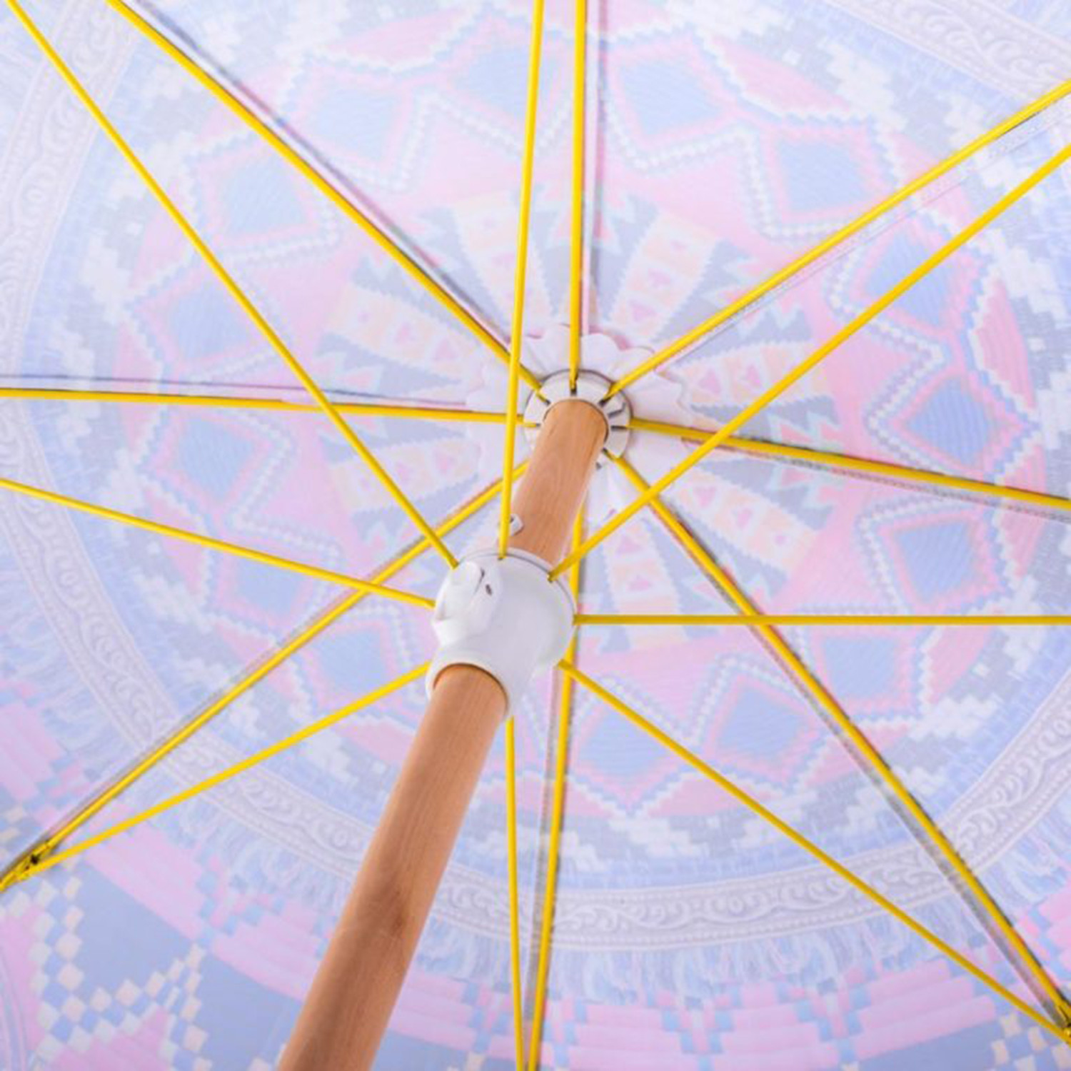 Basil Bangs was thrilled to partner with Australian designer Camilla in this exclusive limited edition beach umbrella. Fueled by the sun, sea and outdoors, ‘Dreamweaver’ draws its inspiration from the colors of Africa and the textiles of Morocco.