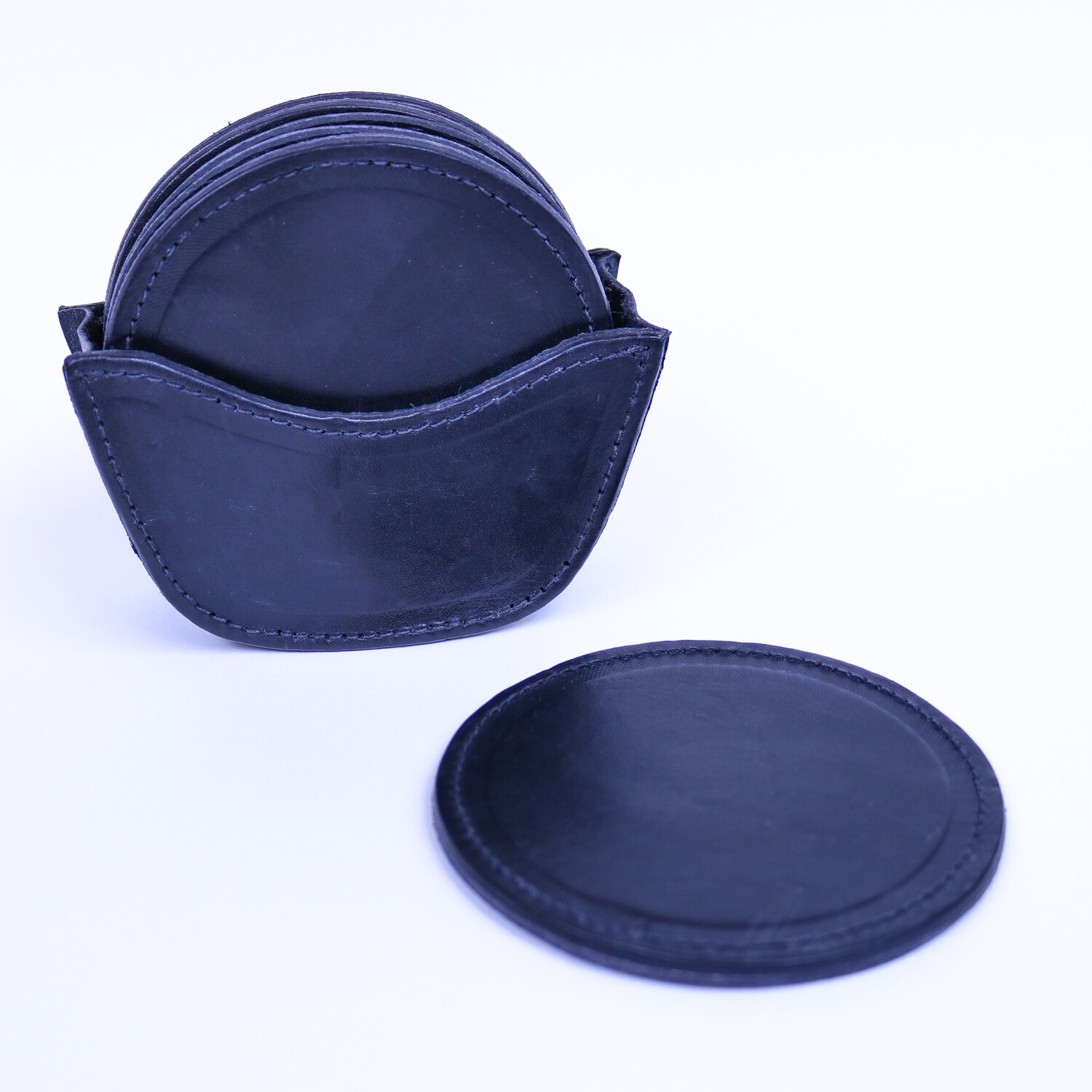 This leather coaster set comes with six coasters and a sleeve. Ideal for any coffee or ottoman table and made to withstand water and stains. Condensation and water marks from use will develop into a gorgeous, natural patina over time.