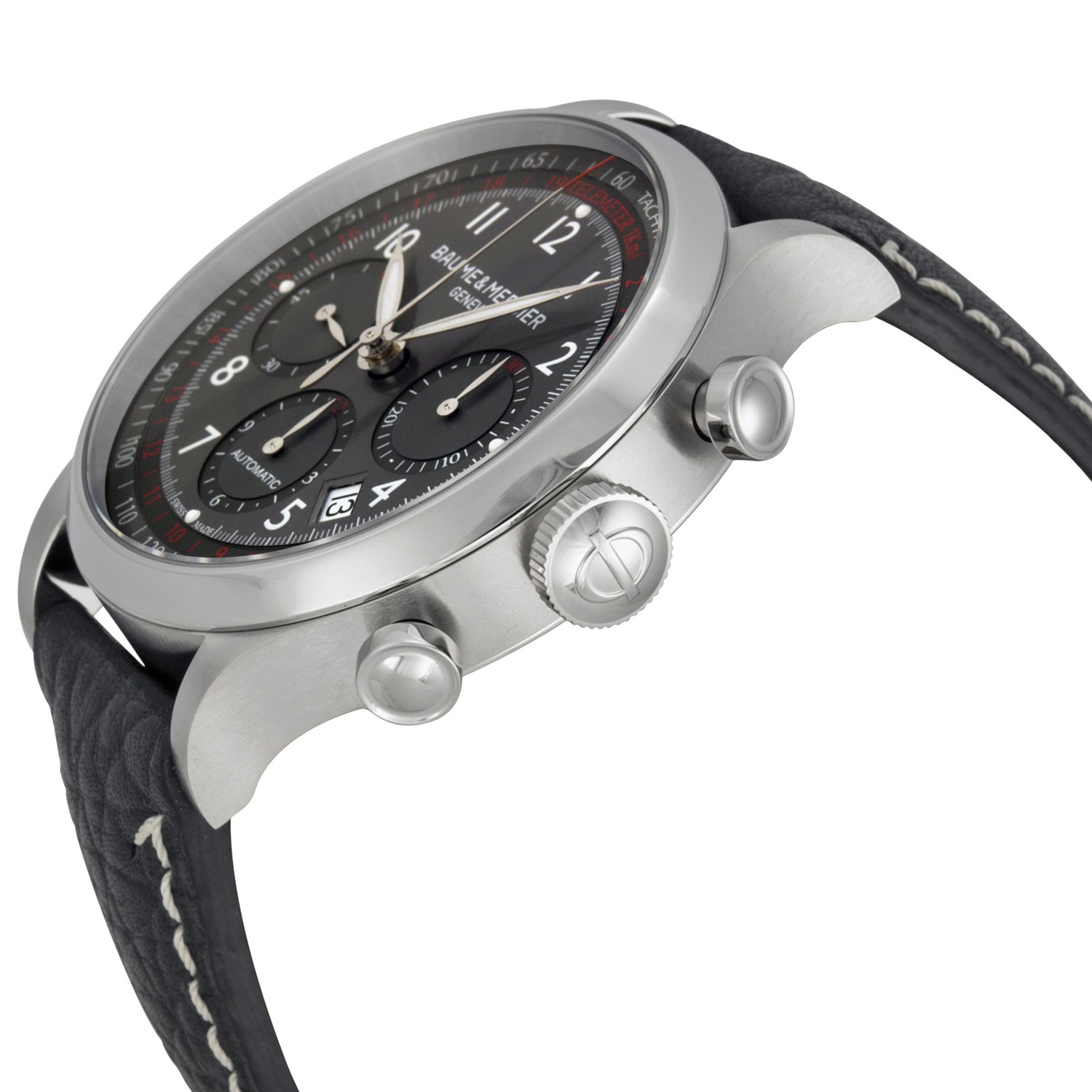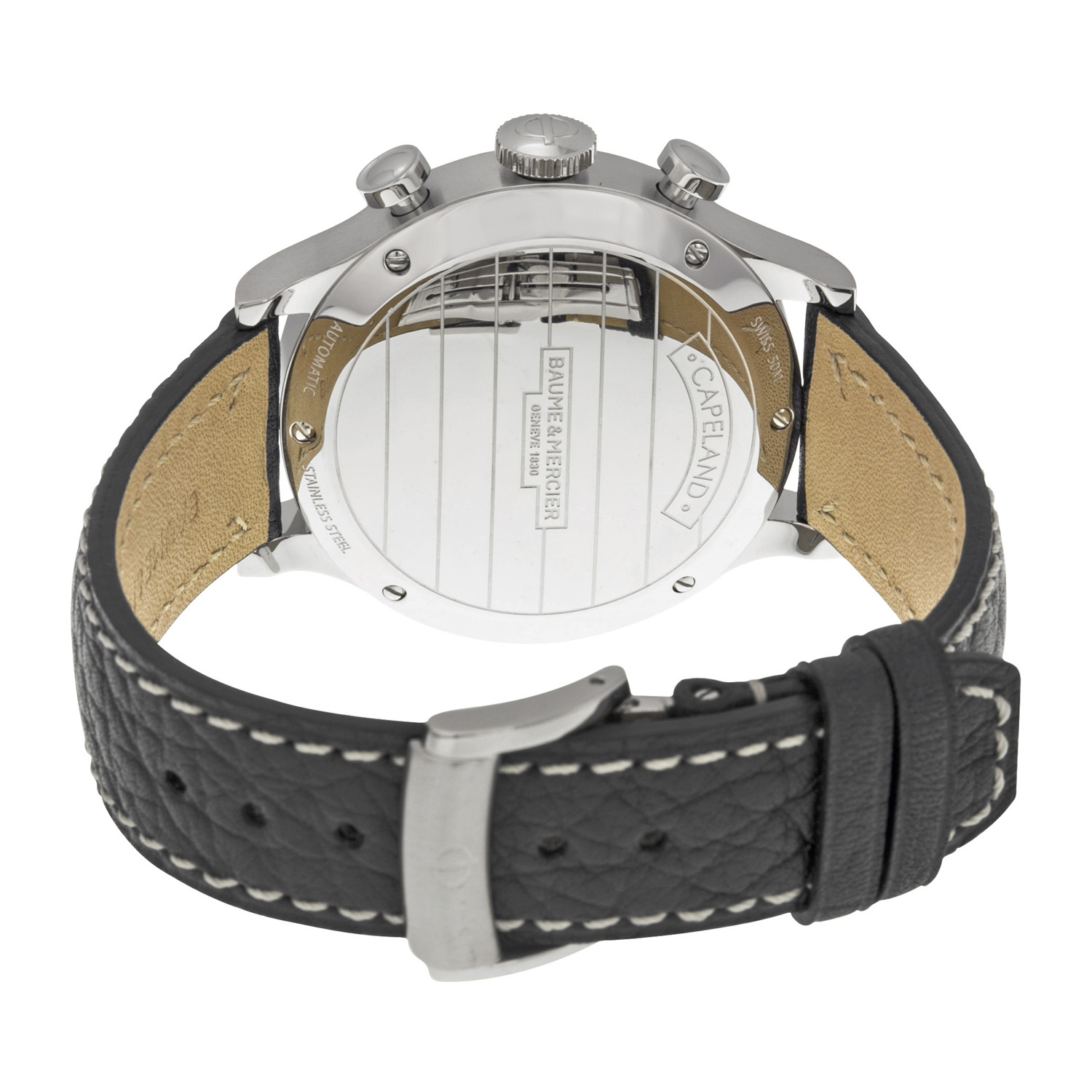The Capeland Automatic Chronograph is a gorgeous timepiece powered by an automatic movement with a 48 hour power reserve. In a stainless steel case with a black leather strap and a fixed stainless steel bezel, it also features a grey dial with luminous hands and Arabic numeral hour markers. Minute markers, a telemeter scale, and a tachymeter scale around the outer rim make it a beautifully finished collectible piece.