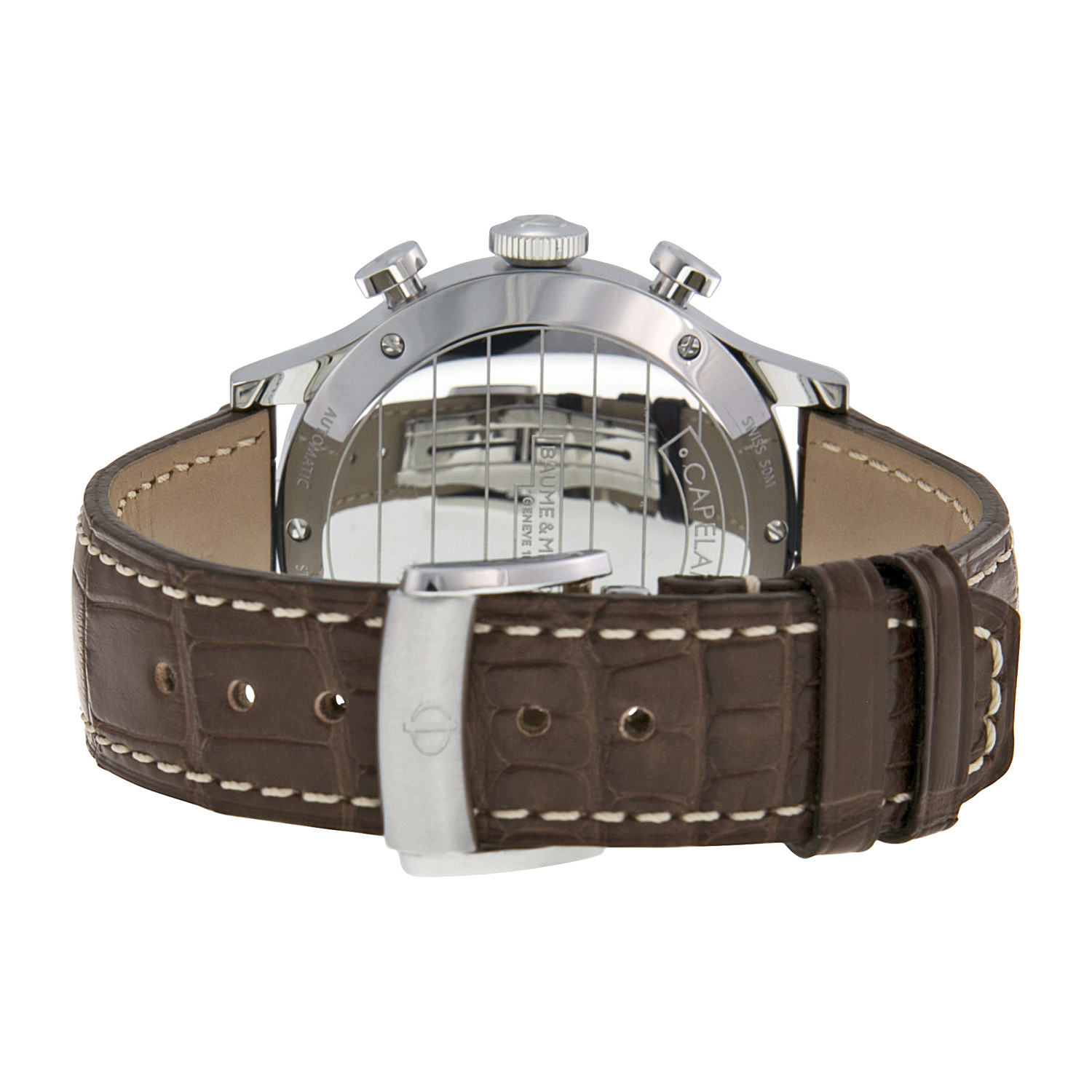 With its retro yet contemporary design, the Capeland Chronograph features a nicely balanced and dynamic graphic appeal that asserts it as the archetypal chic and elegant timepiece. This instrument driven by a mechanical self-winding movement, and has been fitted with a luxe strap that is secured by a triple folding clasp.