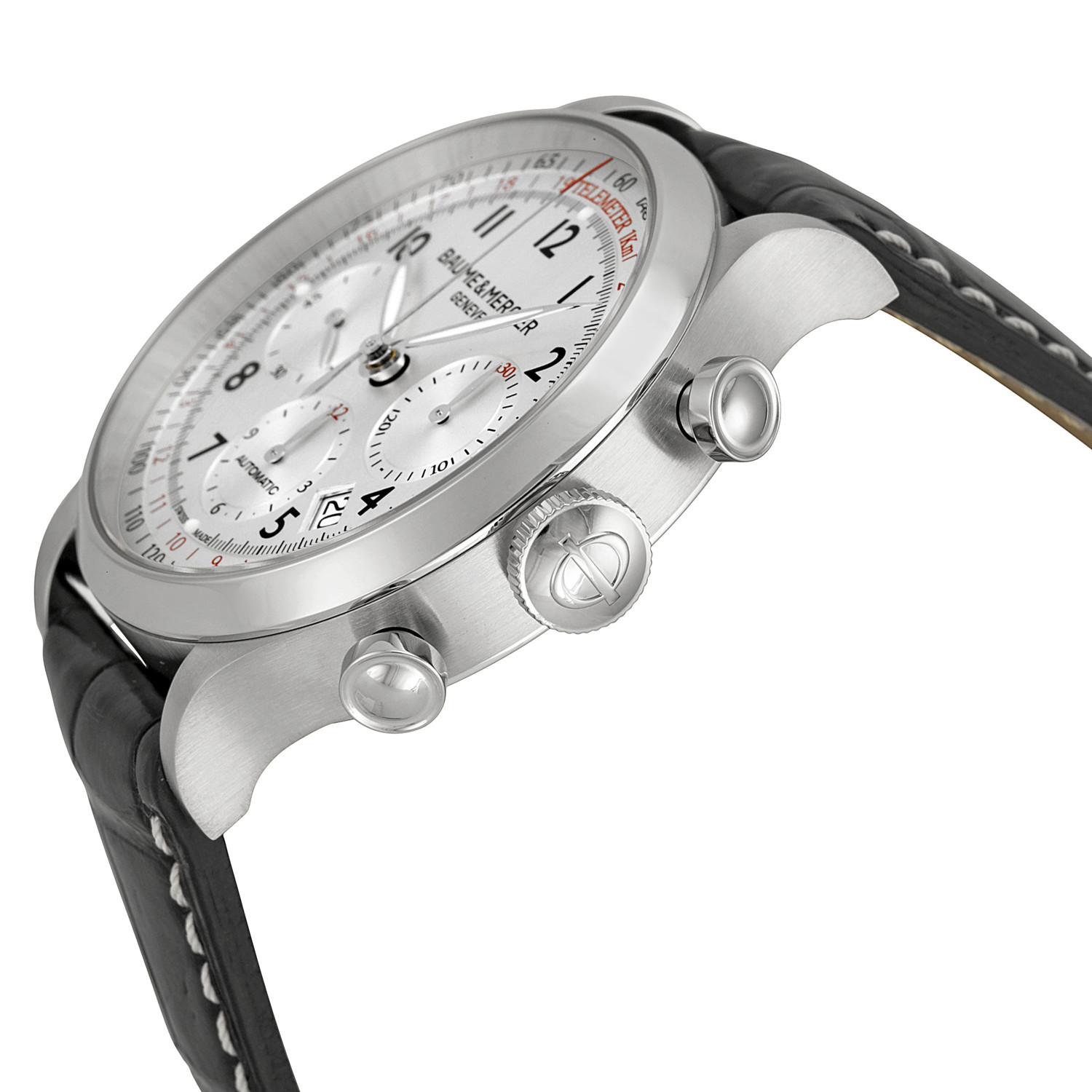 — Style: Baume And Mercier Capeland Silver Dial Chronograph Black Alligator Leather Mens Watch M0A10046