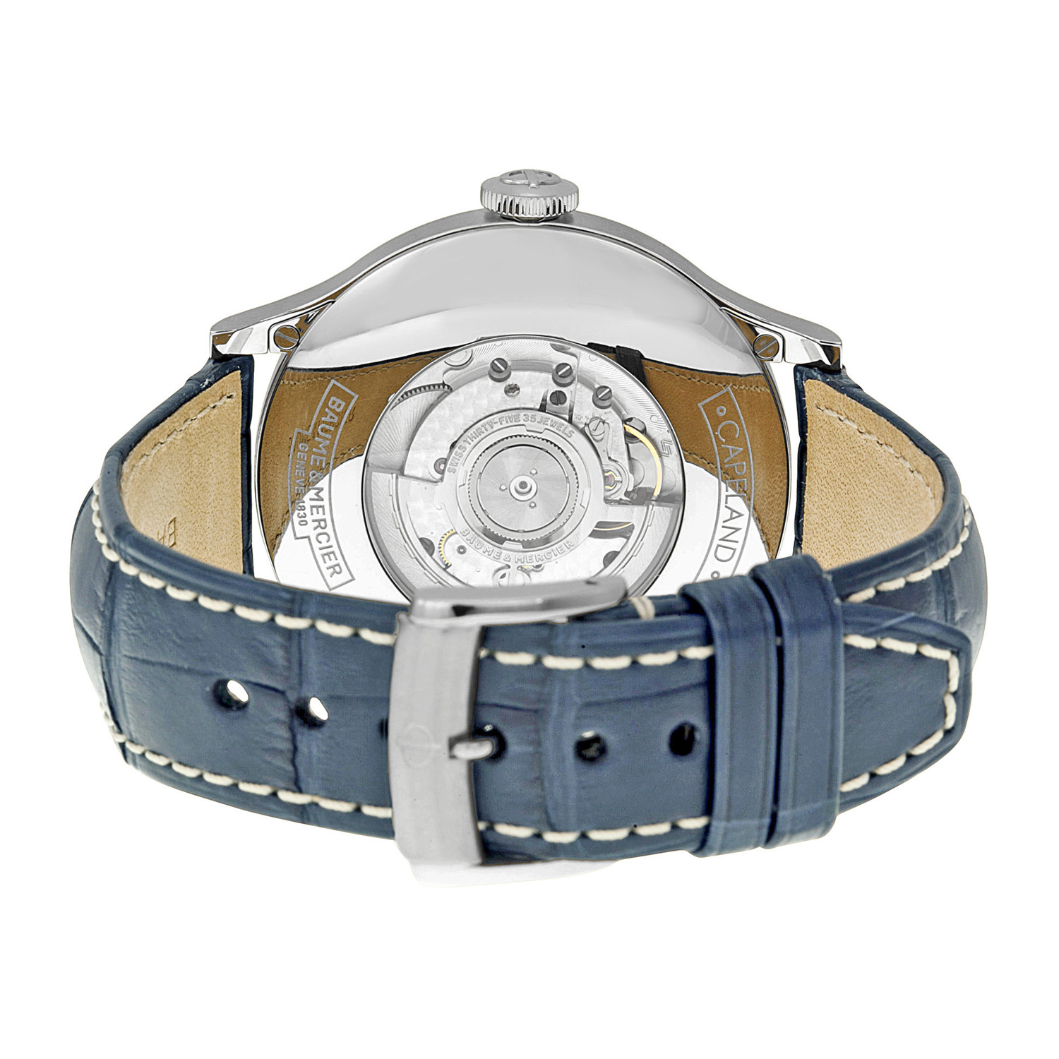— Style: Baume And Mercier Capeland Worldtimer Silver Dial Blue Leather Mens Watch 10106