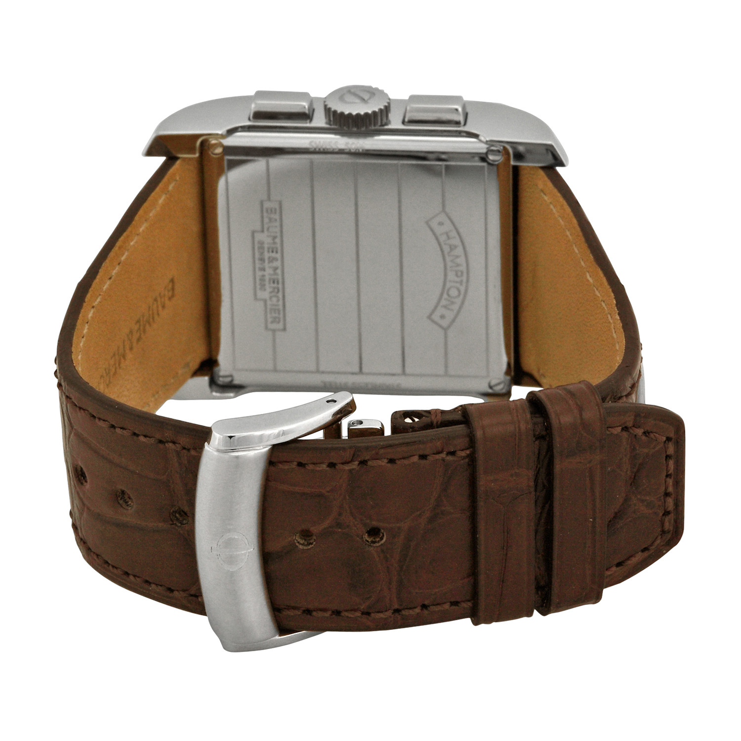 The Hampton Automatic Chronograph, inspired by a model dating from the Art Deco period, plays on its dynamic lines and delicate curves and is self-evident on any wrist. Its rectangular-shaped steel case of balanced proportions encloses a Swiss Made automatic movement, all on a luxe leather case that looks lovely with your collection of couture chronographs.