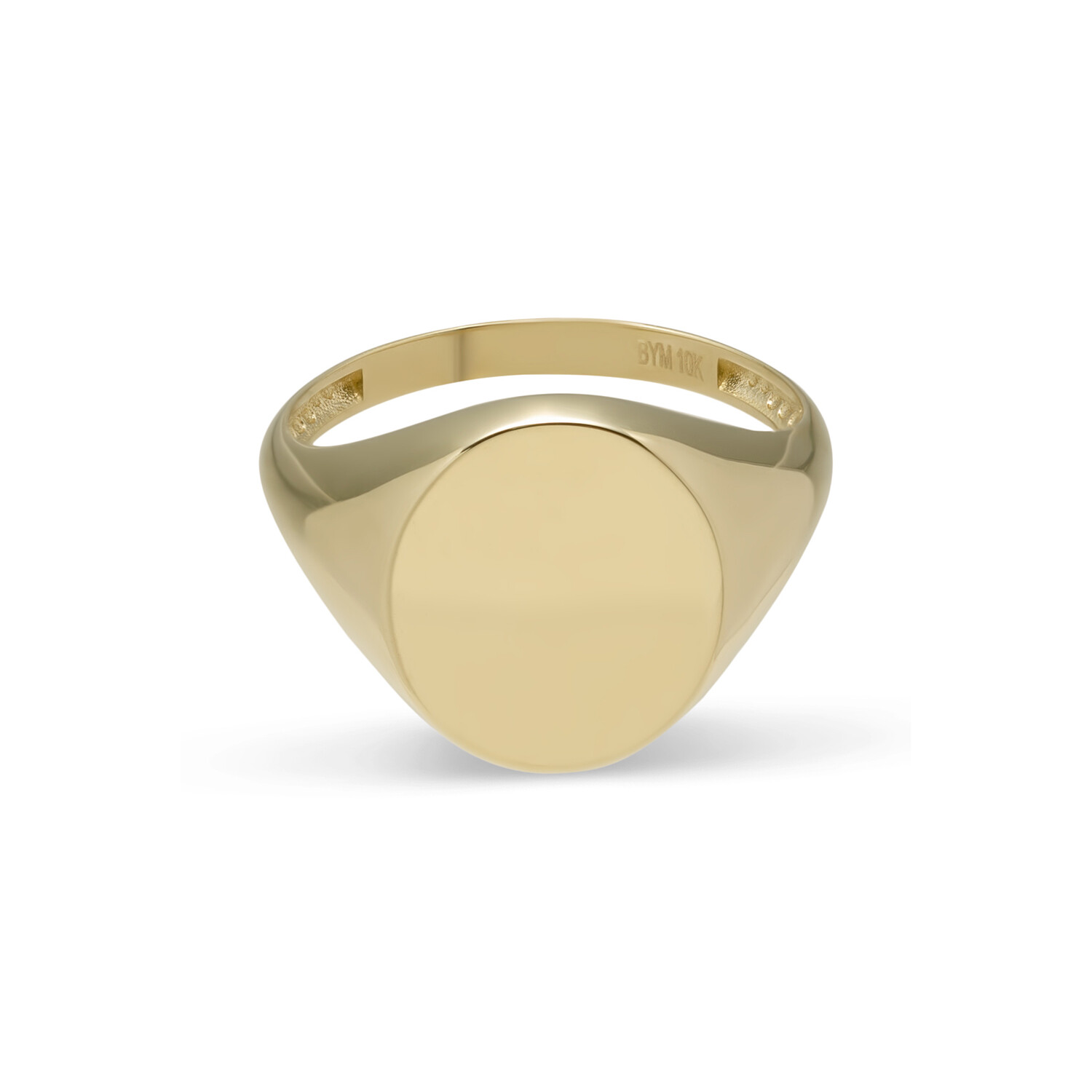 Solid 10k Yellow Gold Oval Shiny Signet Ring // Size 7