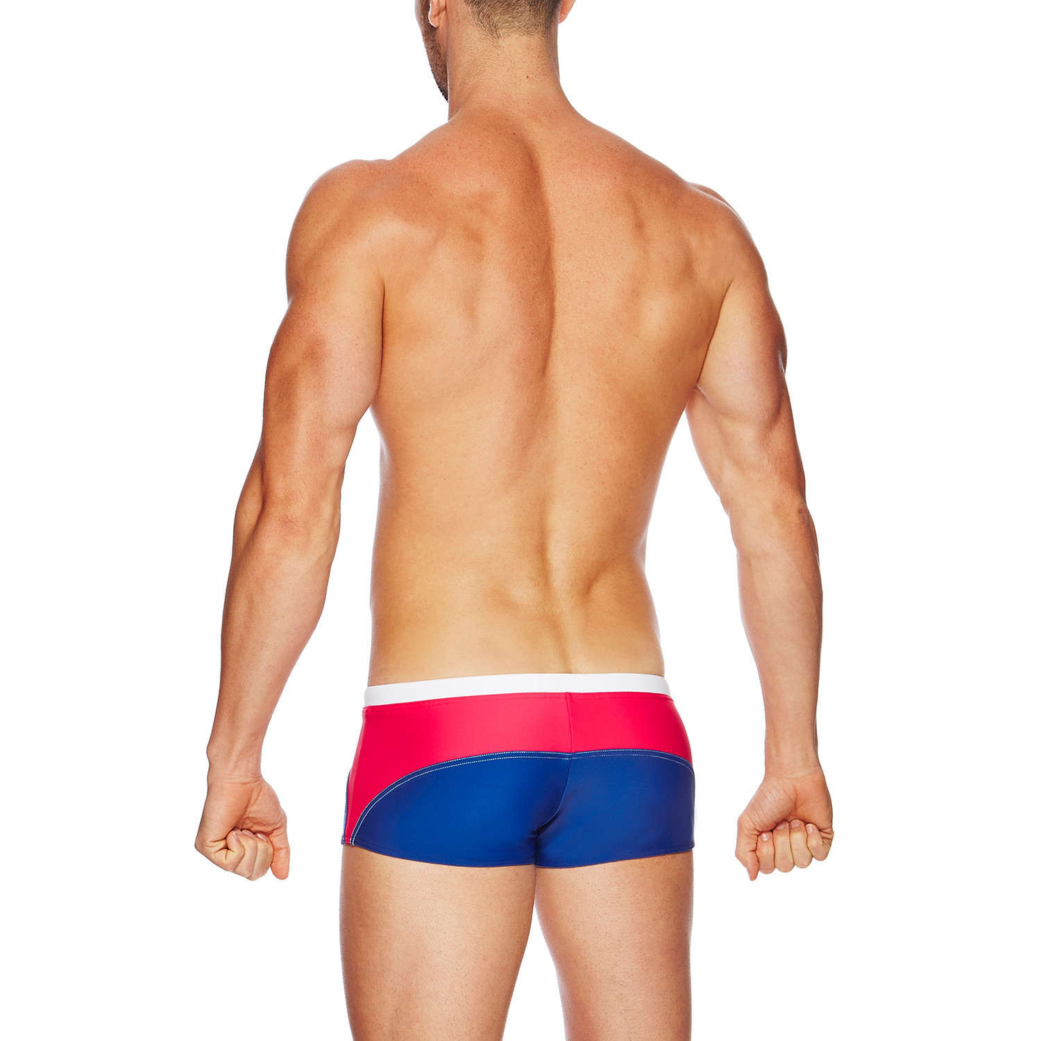 If you're a little bit sporty, a little bit retro, and a whole lot of fun, then this is the swim trunk is just for you. Made of a comfortable, body-defining spandex, these trunks work great as a fun pair of summer shorts you can dunk, swim, and lounge around in. Whether on a boat, on a pool deck, or resting by the shore, these swim briefs have got you covered.