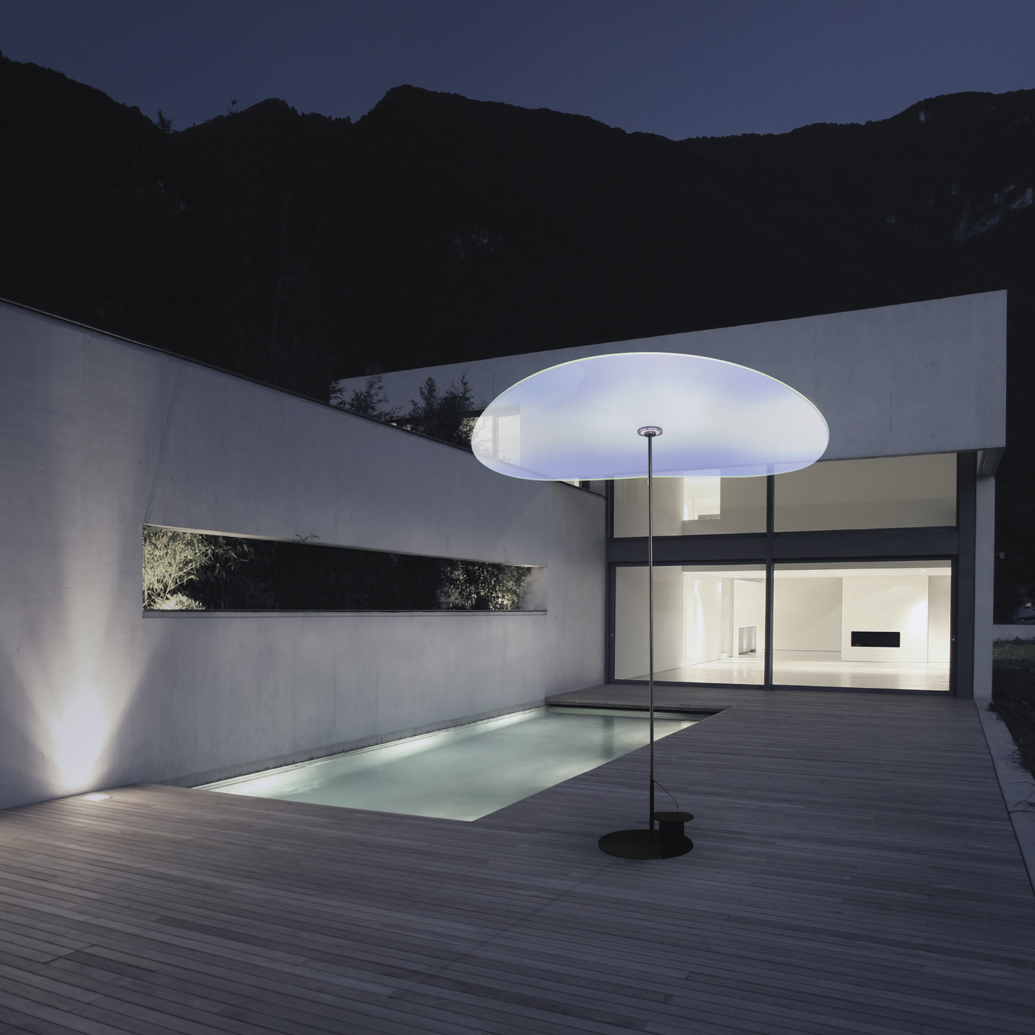 The Smoon Ombrella is an elegant light sculpture that plays with the flexibility of its materials to create unique lighting effects. The Ombrella is an elliptical shape made of plexiglass, inspired by the shape of hats in the 1950s. It radiates LED light beautifully throughout any space.