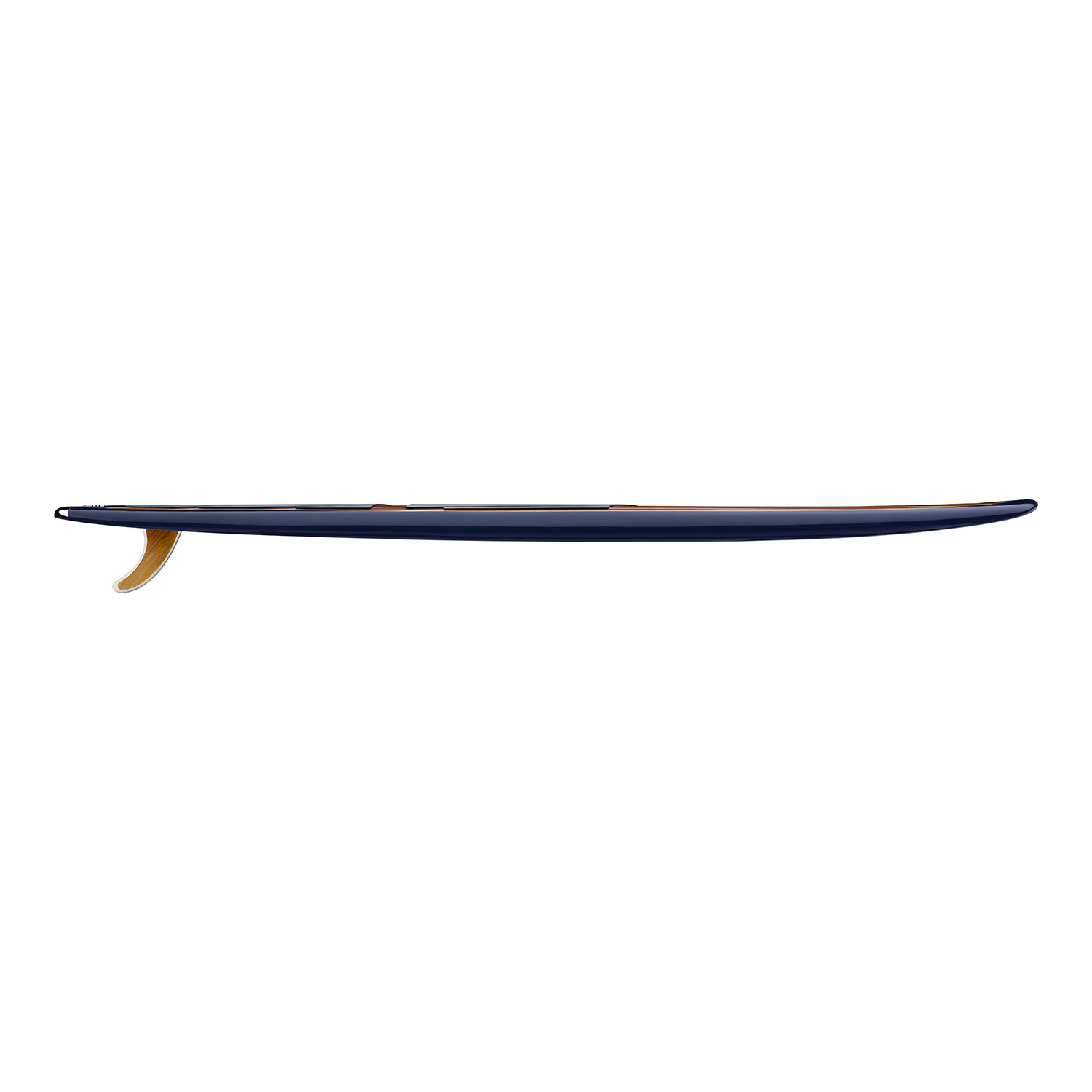 Unique to this board, is a custom layup of walnut and maple to evoke the decking of a vintage mid-century lake runabout. The board is very stable and is a cruiser at heart.