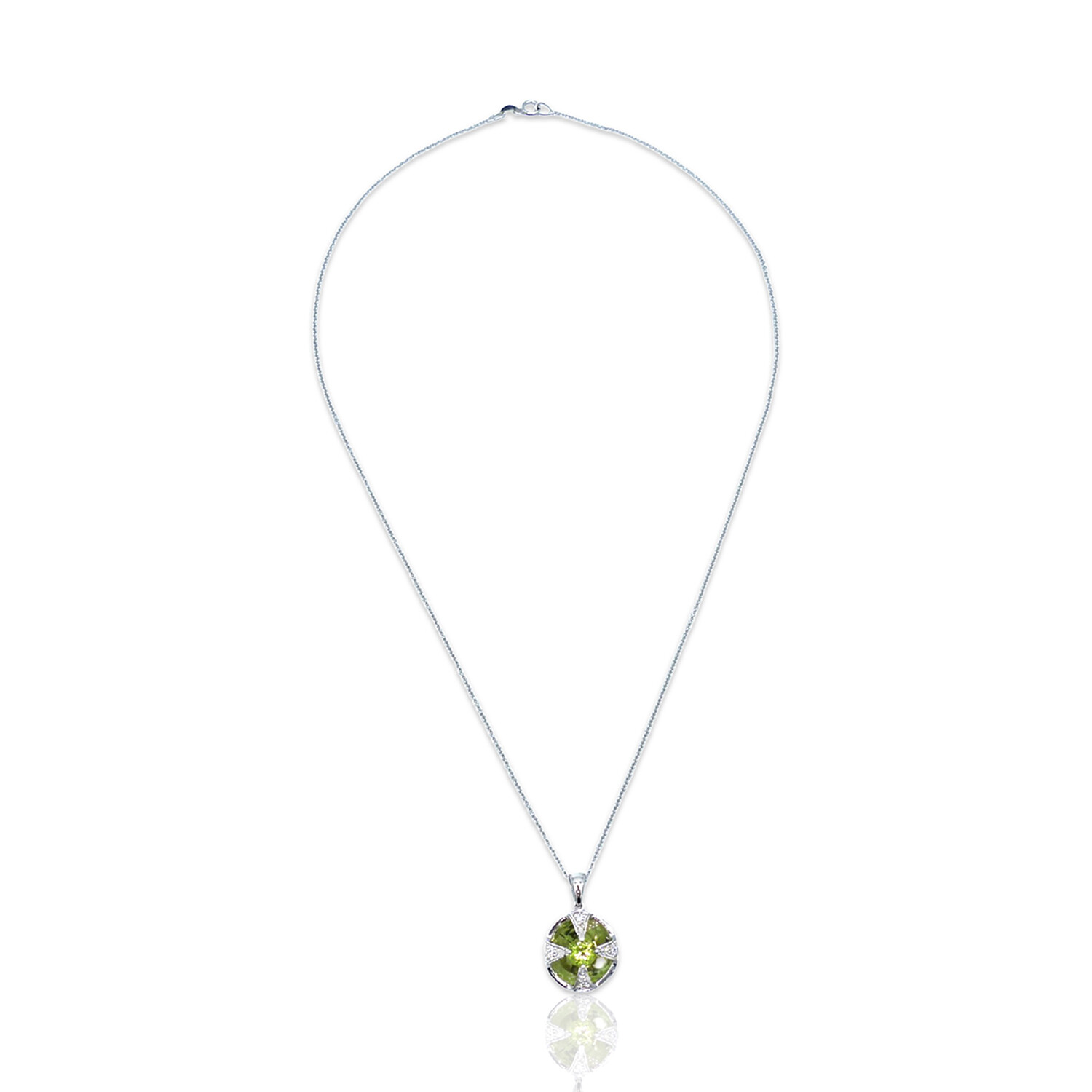 14K White Gold Diamond+ Peridot Necklace // 16" // Pre-Owned