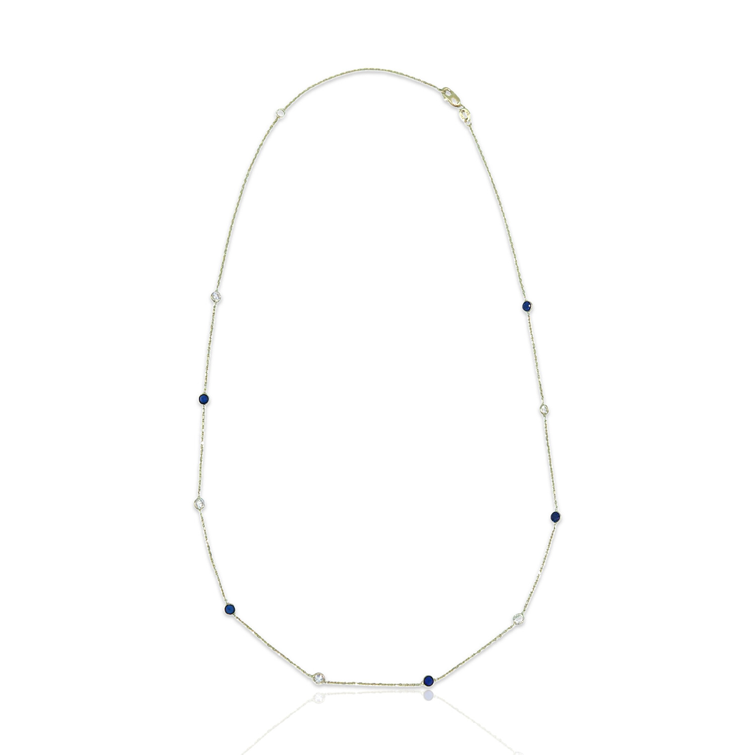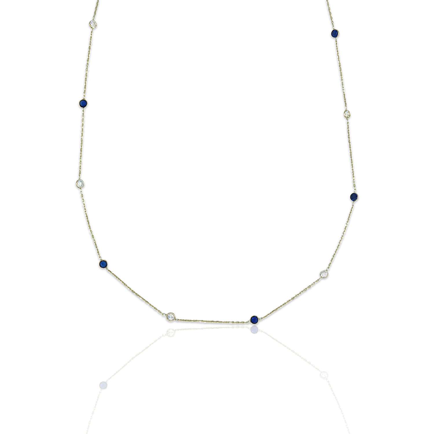 14K Yellow Gold Diamond + Sapphire Station Necklace // 18" // Pre-Owned