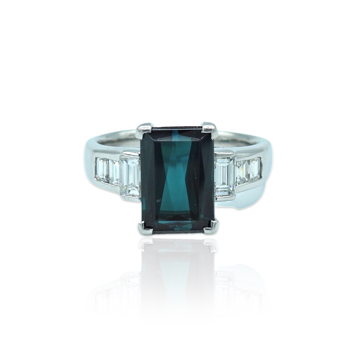 Platinum Diamond + Green Tourmaline Ring // Ring Size: 6.25 // Pre-Owned